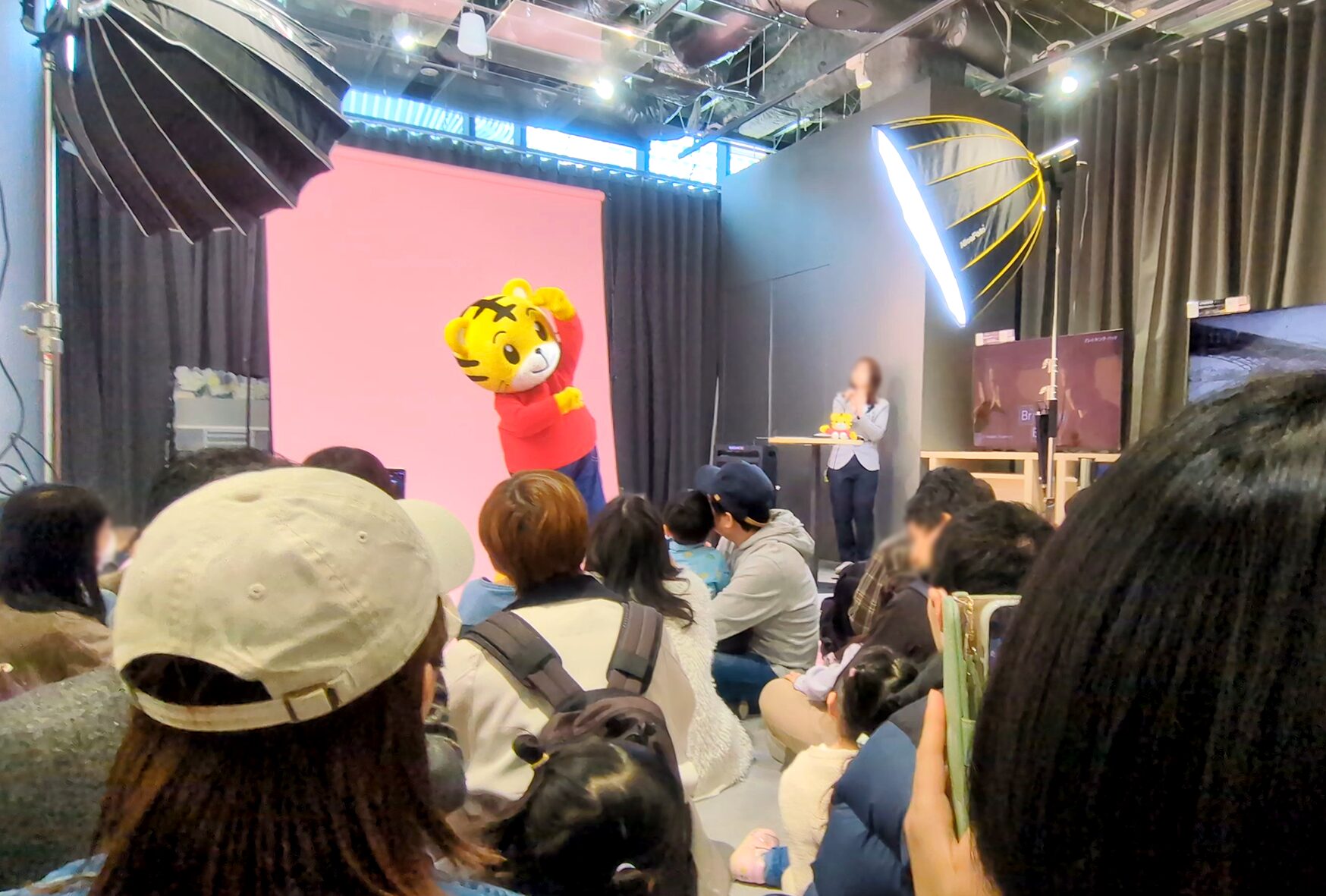 5分前でもすでに前列にはお客さんがいらっしゃいましたが、予約制なのでそこまで人数は多く無く、問題無く子供たちもしまじろうを見る事が出来ました。