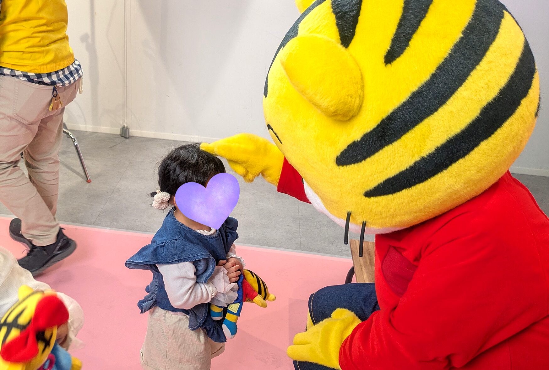 2歳の次女は、あまり着ぐるみのキャラと絡んだことが無いので、もしかしたら泣いてしまうかな…と不安だったのですが、全く問題なく触れ合う事が出来ました。
