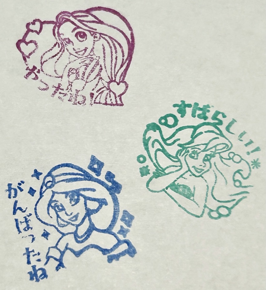 宿題チェックに使えそうなディズニープリンセスデザインは「やったね」「すばらしい」「がんばったね」の3種類。