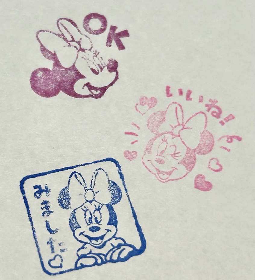 連絡帳に使えそうなミニーマウスデザインは「OK」「いいね!」「みました」。