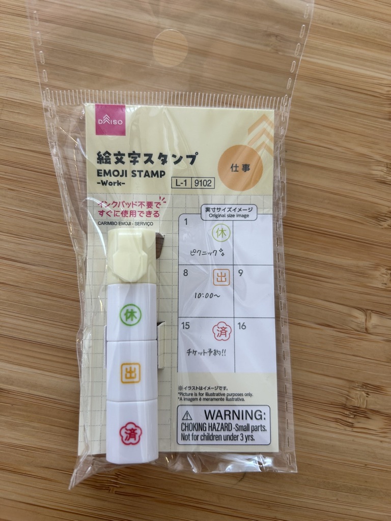 連絡帳なども保護者が確認した印として一言書いたり印鑑を押したりしていたのですが、小学校入学に向けて可愛いスタンプを探していたところ、なんとDAISOで発見!