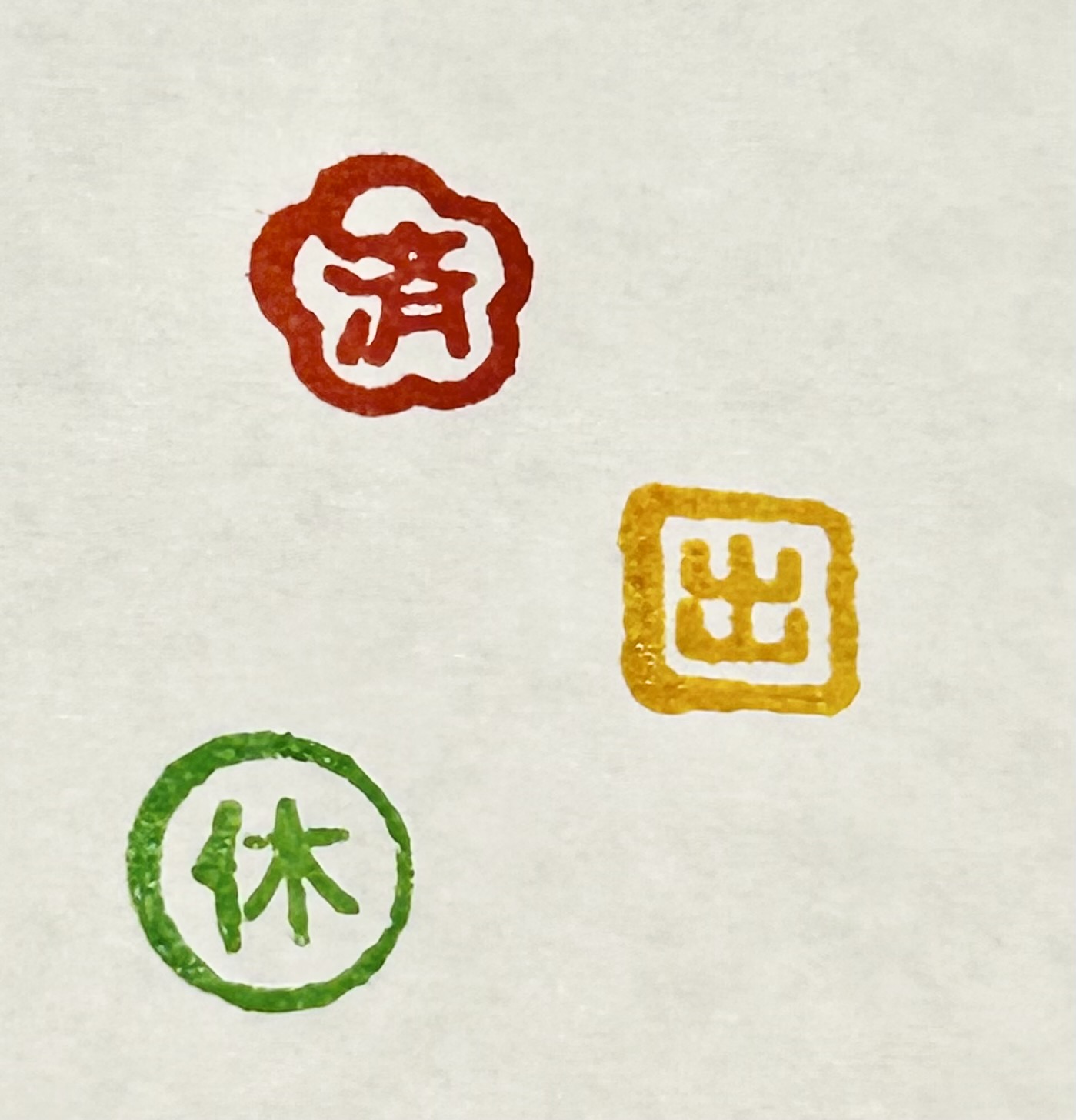シンプルな「済」「出」「休」の3種類がセットになった小さめサイズのスタンプも購入。