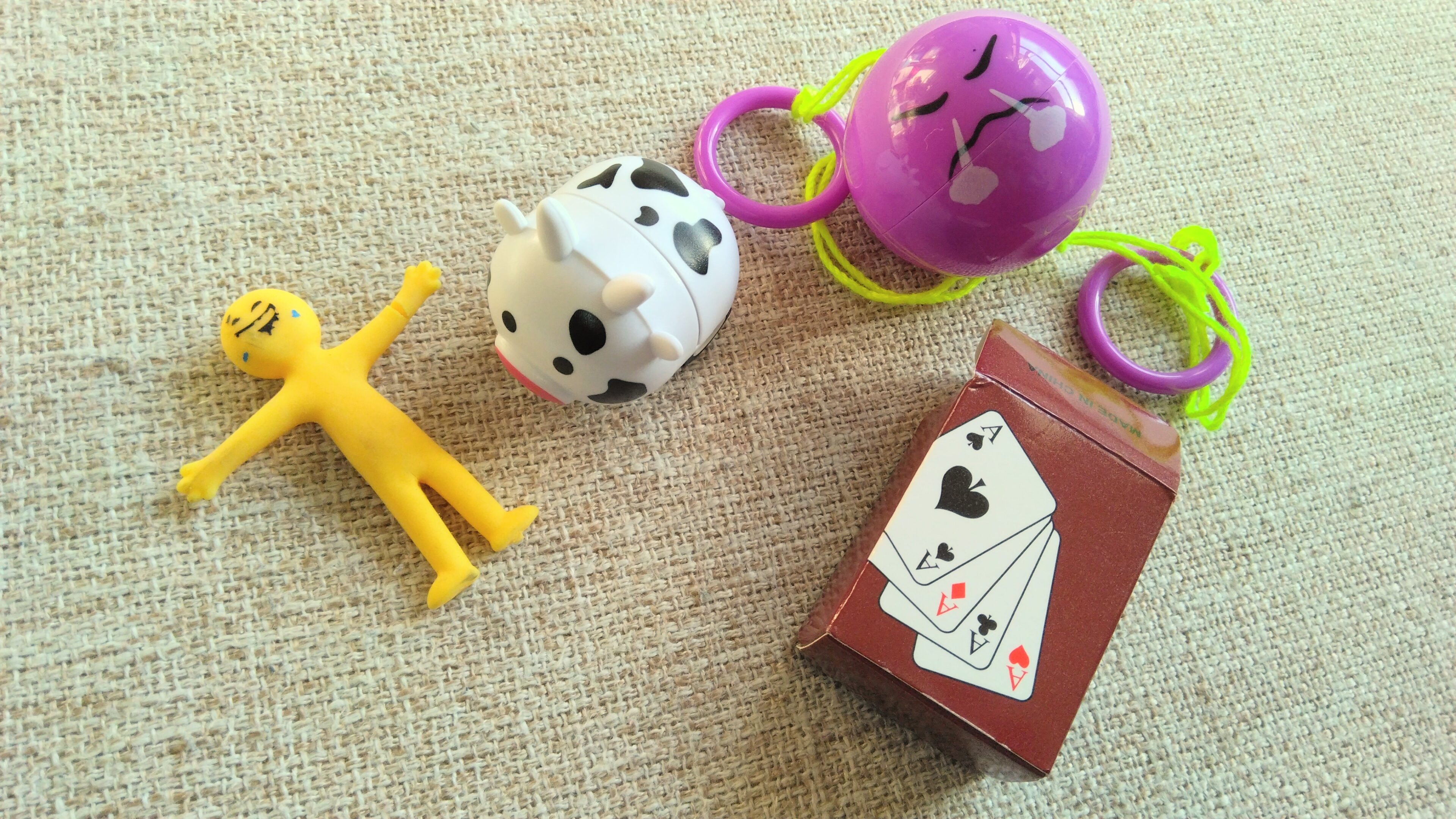 カプセルにこれだけの量が入っていたと思うと驚き、「これ大当たりじゃない…?」と親として思わず喜んでしまいました。お子様ランチを頼まなければ100円で1回できるのですが、昨今のガチャガチャ相場を見るとかなりお手頃価格。これまではお値段相応と感じる品々でした。だからこそトランプが出てくるとは、想定外でした。