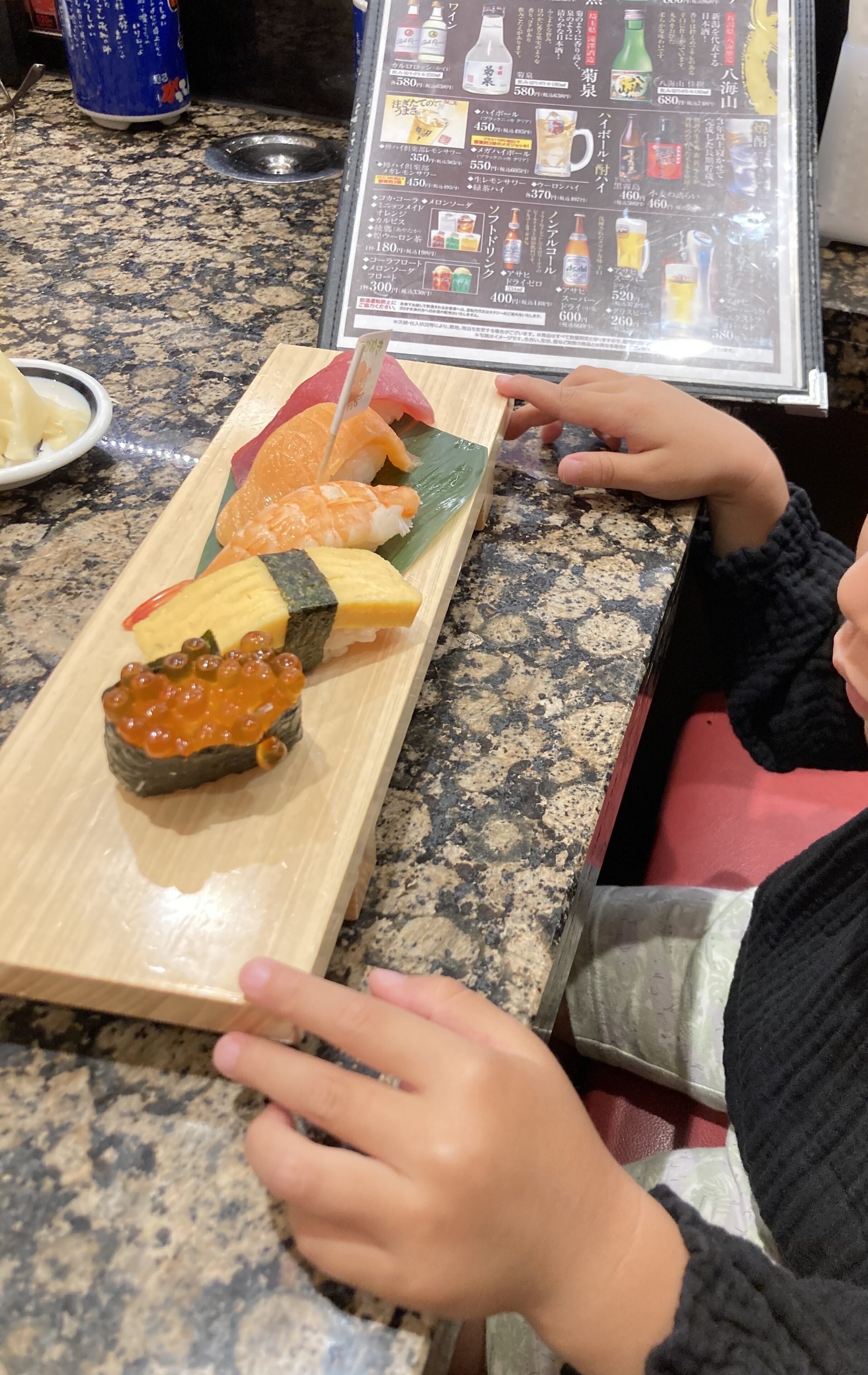 これだけでも十分うれしいのですが、子ども寿司といえどネタの鮮度が抜群で、これまで生魚を避けていた息子がマグロとサーモンに初挑戦。「おいしい!」と笑顔を見せてくれました。