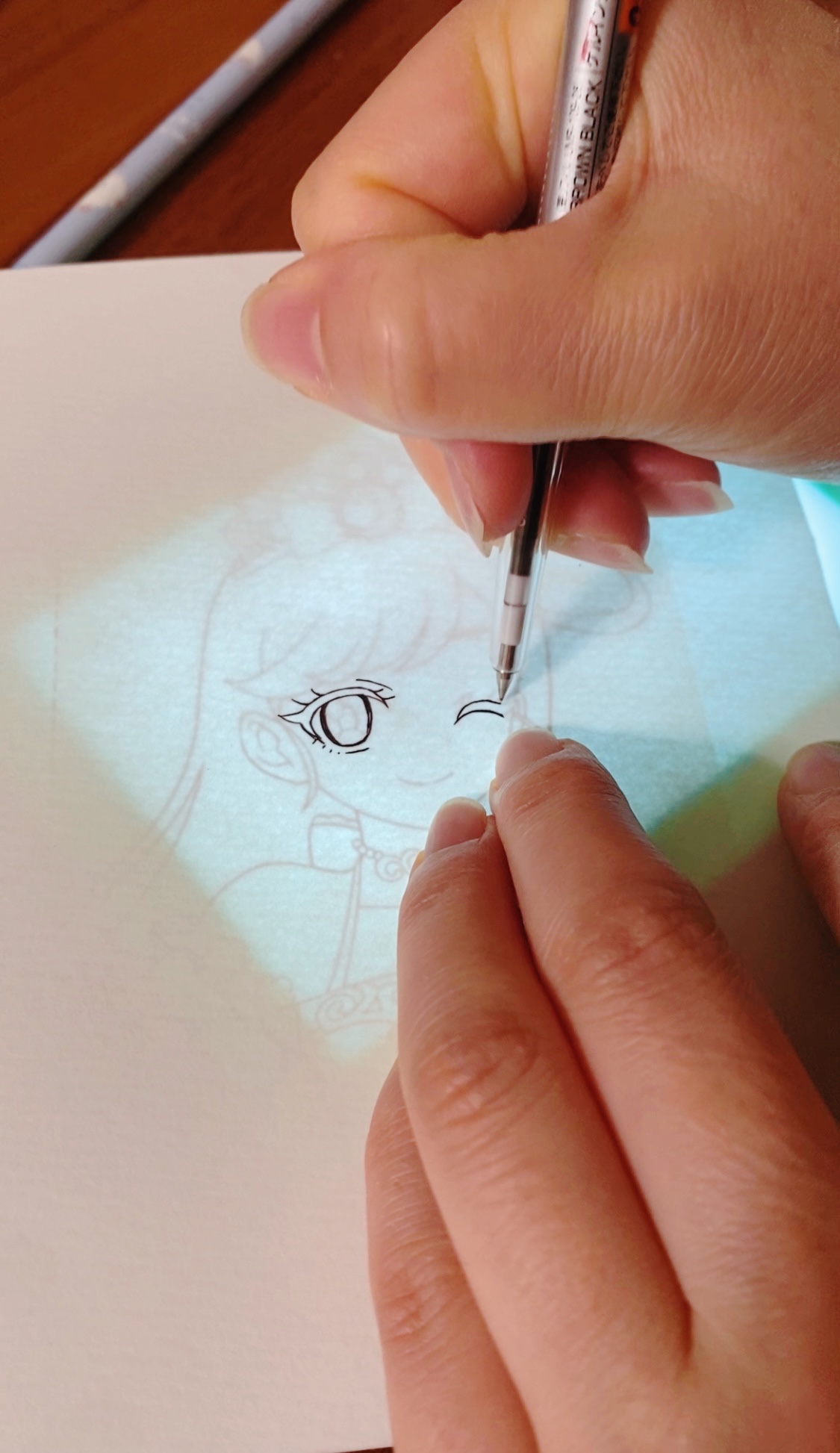 下絵を原稿用紙にテープなどで固定し、ライトボックスで下から照らすことで楽にペン入れができていました!