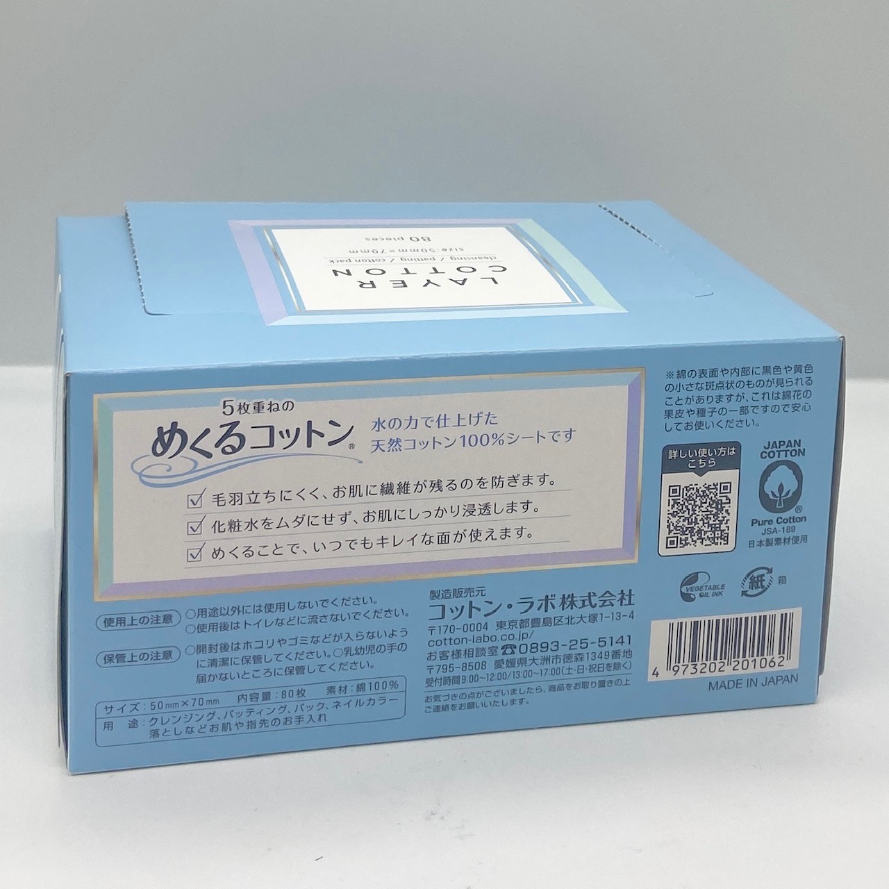 コットン・ラボ「めくるコットン」5枚重ね×80枚入 280円(税込)