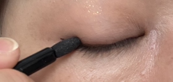 さらにおすすめなのが、アイラインの上からアイシャドウの締め色(私は濃いめのブラウン)を軽く重ねること。