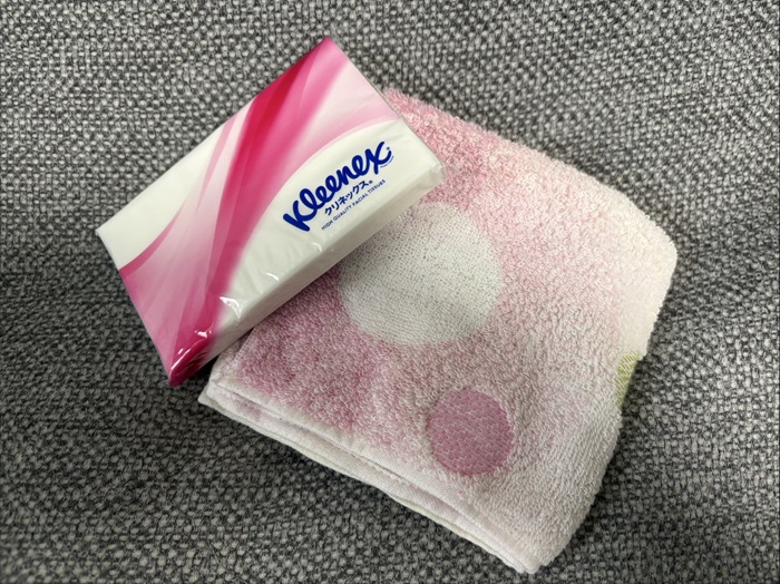 ティッシュは予備も持っておくと安心です(笑)。