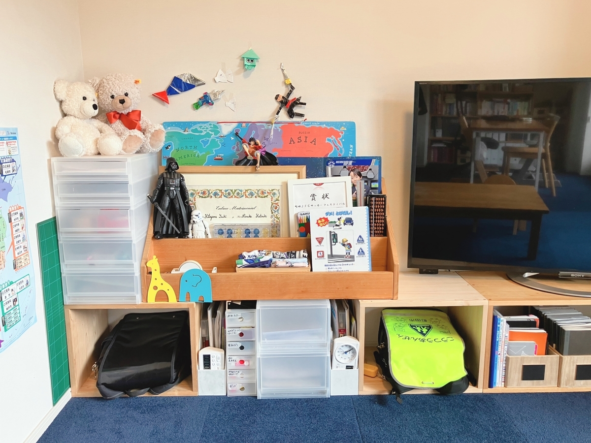 夏休み前あたりからは、長男が帰宅する前に、次男ひとりで登校準備をするようになりました。とはいえ、ランドセル置き場は家の一等地。キッチンからも見える場所です。