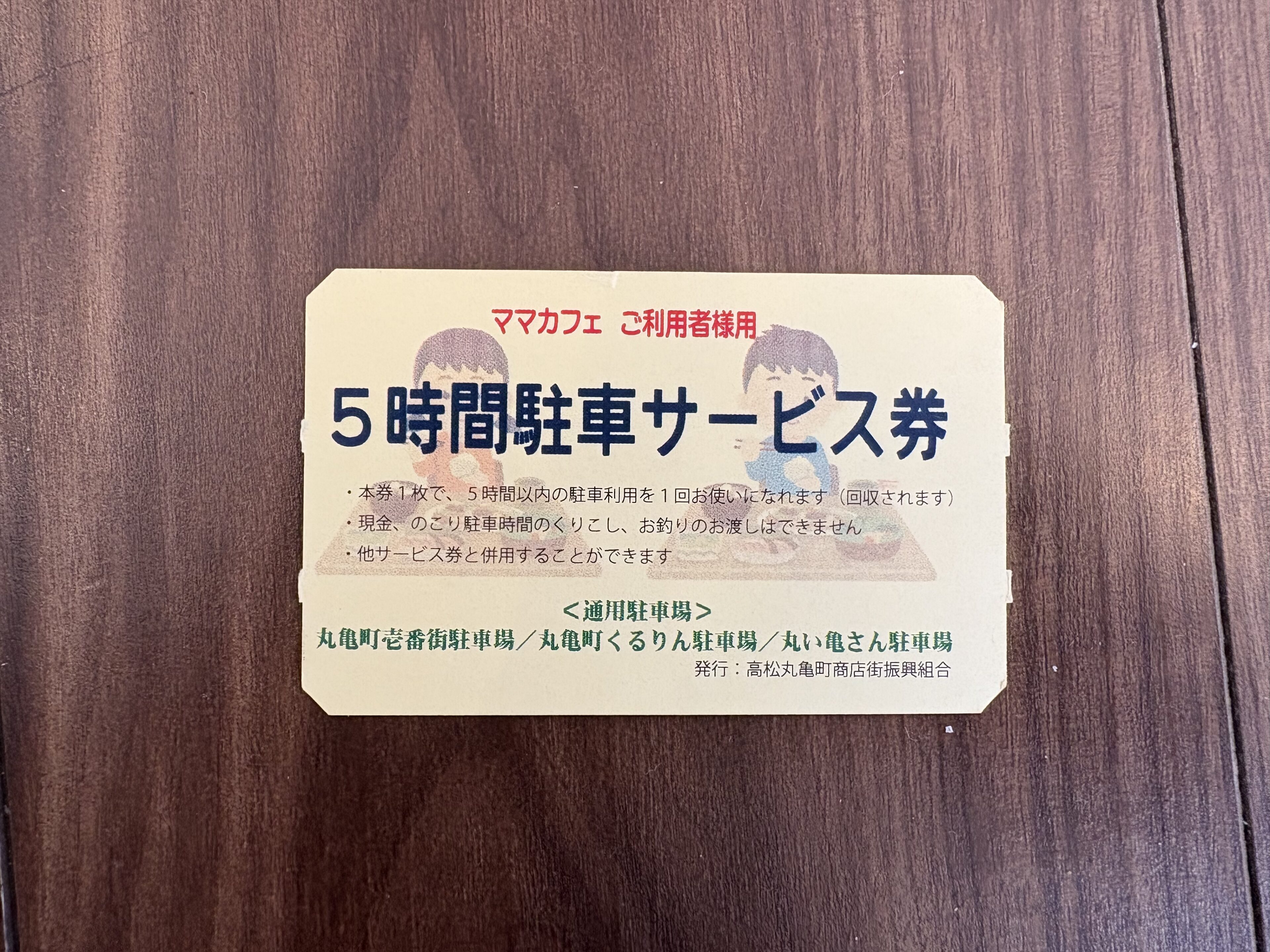 ママカフェは高松市丸亀町壱番街にあります。提携駐車場の5時間分の駐車券がもらえるのも嬉しいところ。車社会の香川県民には本当に助かる。時間を気にせず過ごせるだけで、心の余裕はまったく違います。