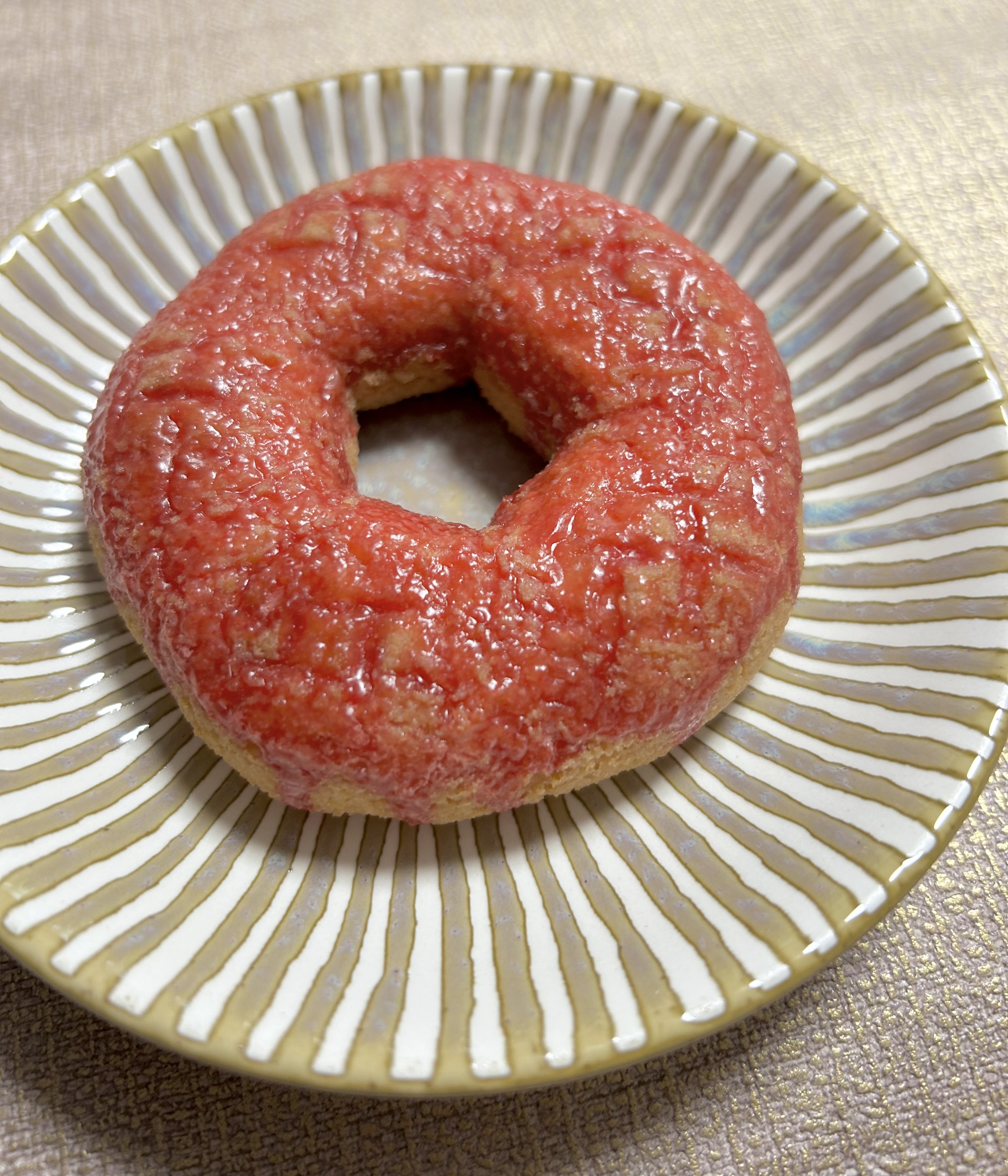 桜風味のもちっとした生地にいちご風味のグレーズをコーティング。