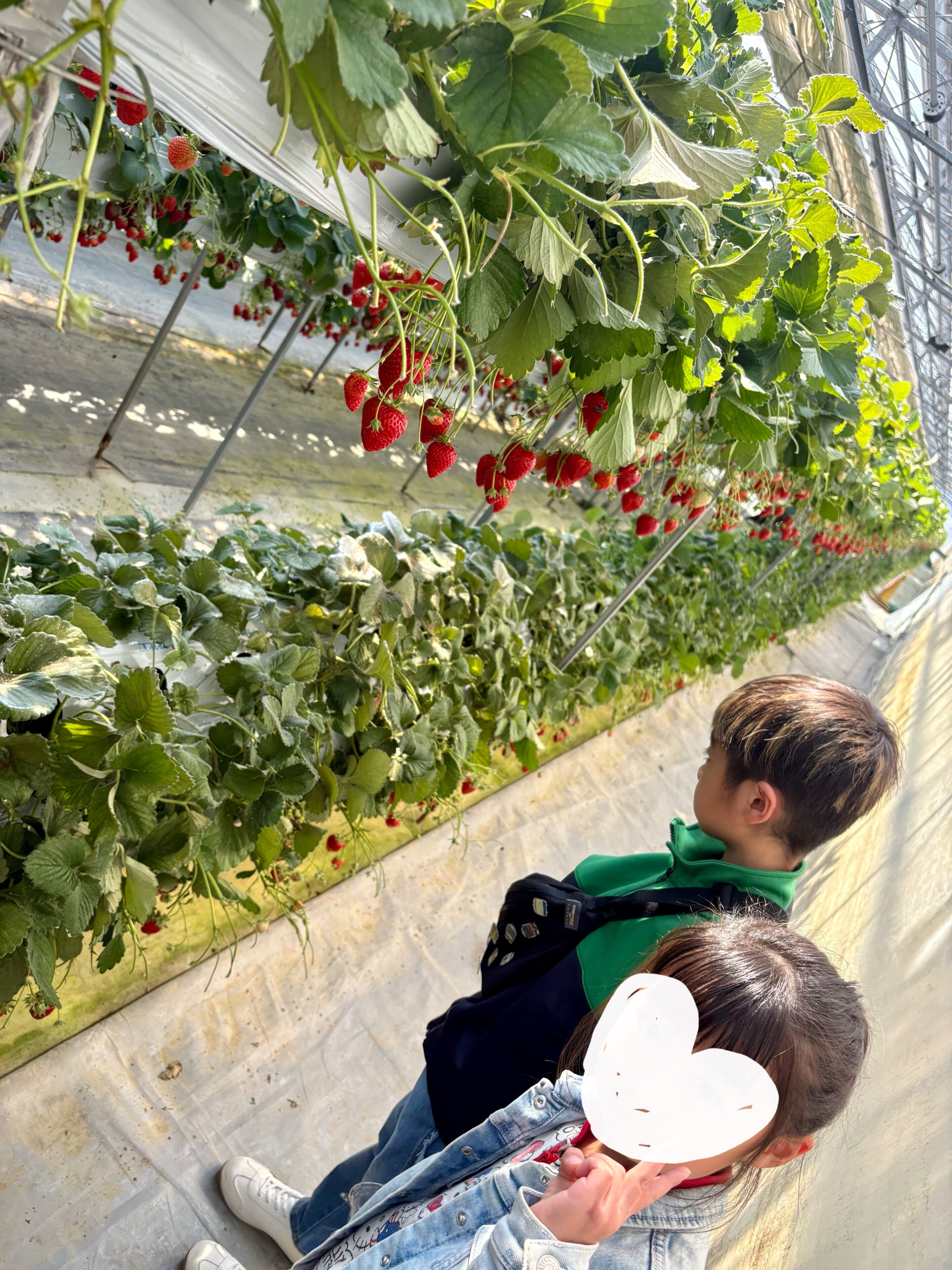 子どもが大きくなり、自分の足で動いて、自分でいちごを取って食べられるようになったので、母は本当に楽で自分のいちごに集中できました。(娘はいちごがうまく取れない時もあり、その時は一緒に取りました)