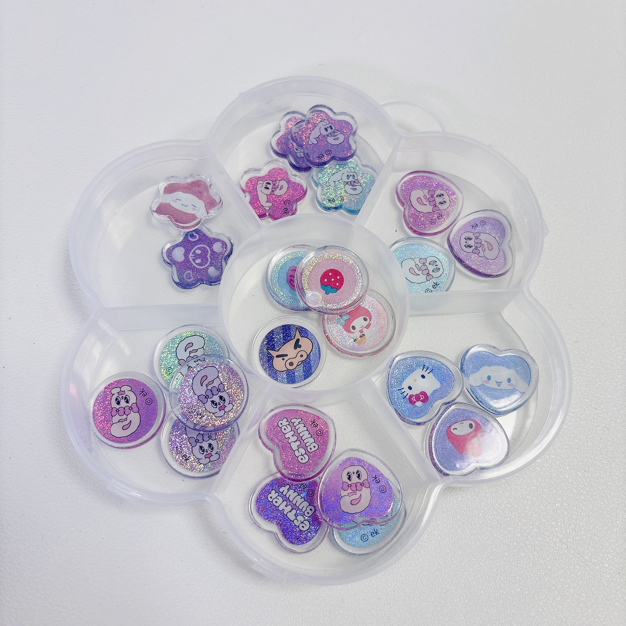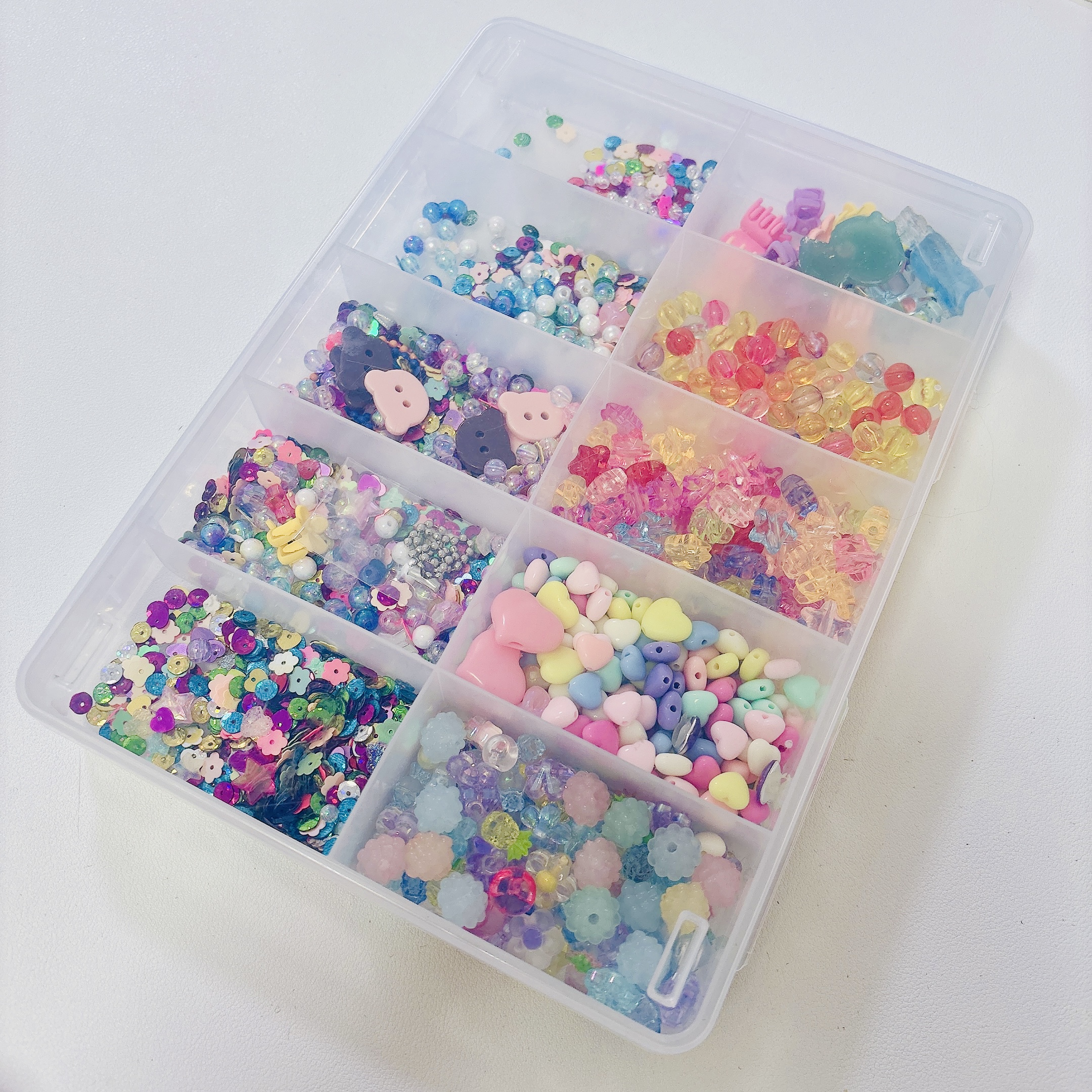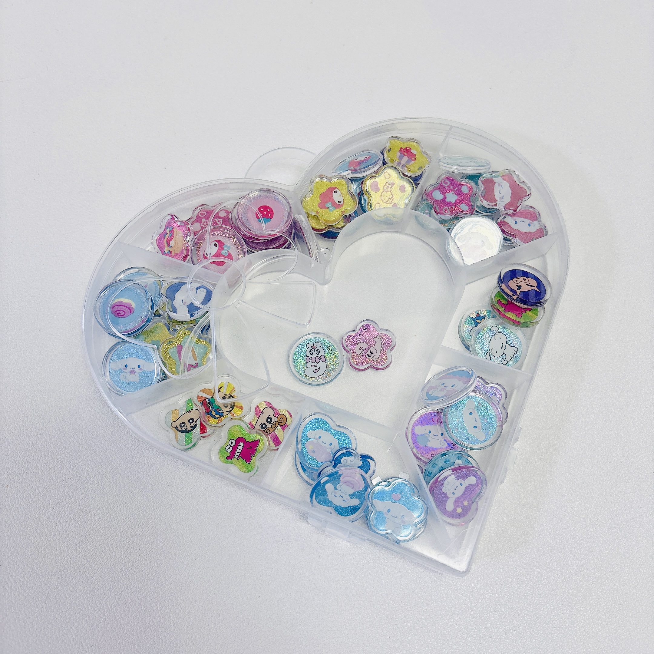 宝石箱?宝箱みたい~と娘もご満悦。とにかく眺めているだけで幸せな時間。かわいいケースにお気に入りのものを入れて、大事そうに持っていました!おはじきシールのみならず、フレークシールなんかを種類別に入れても良さそうです。