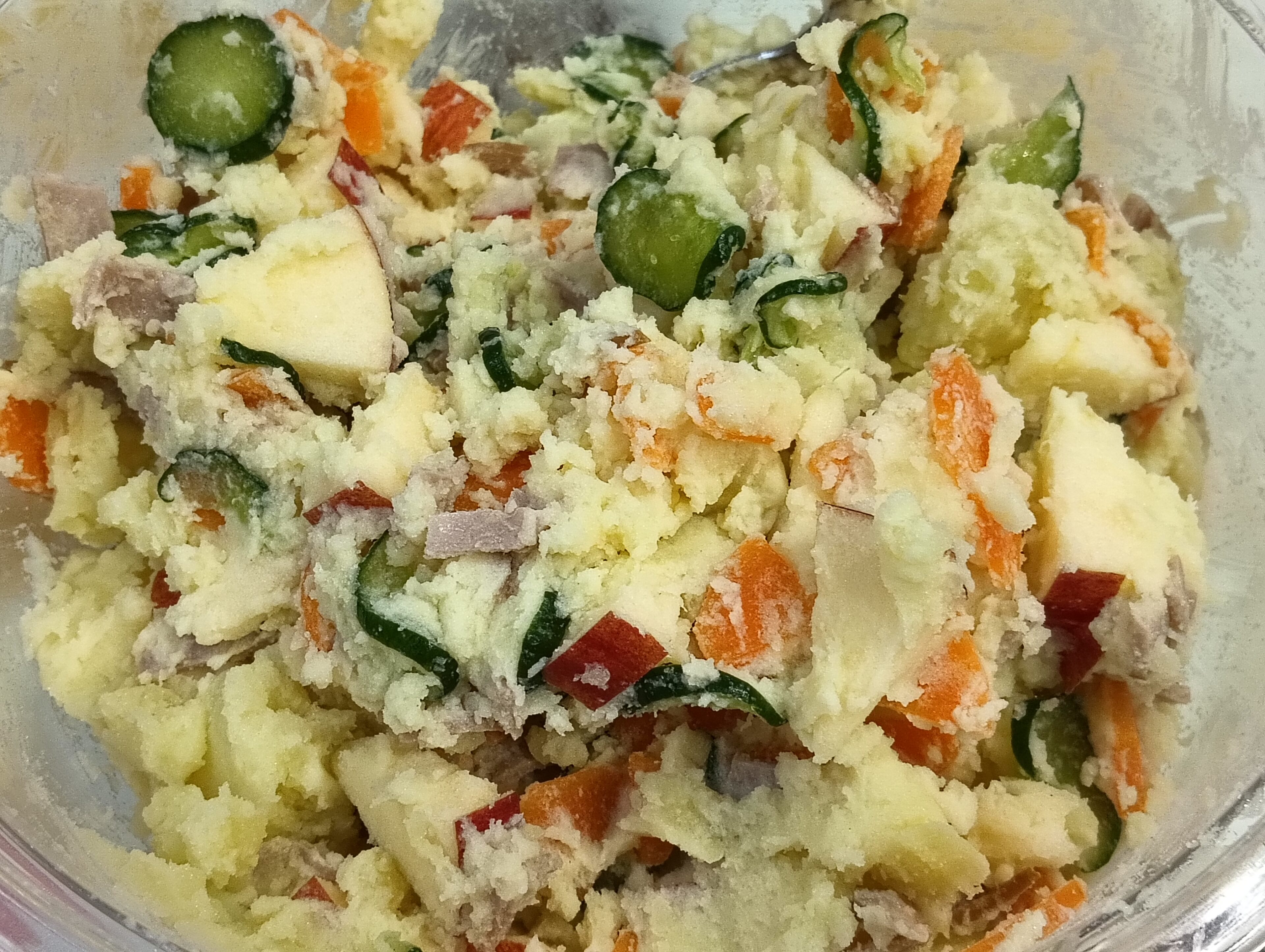 りんごを入れたところ、すごく気に入って食べてくれるようになり、ポテサラ好きになったので、こちらで「りんご入りポテサラ」を紹介したいと思います。