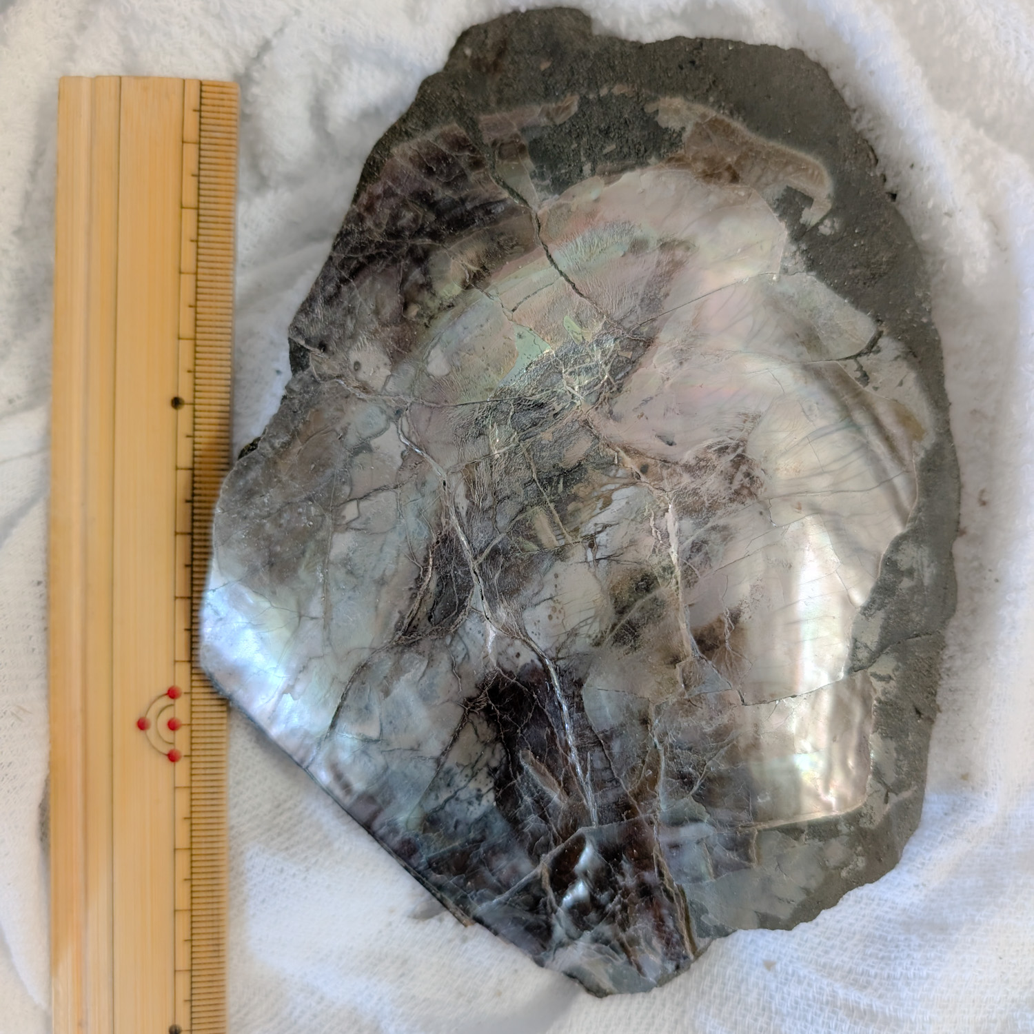 どうやらタイラギの内側の螺鈿は内側全体ではなく、4分の3ほどで上部は螺鈿が無いようでした。