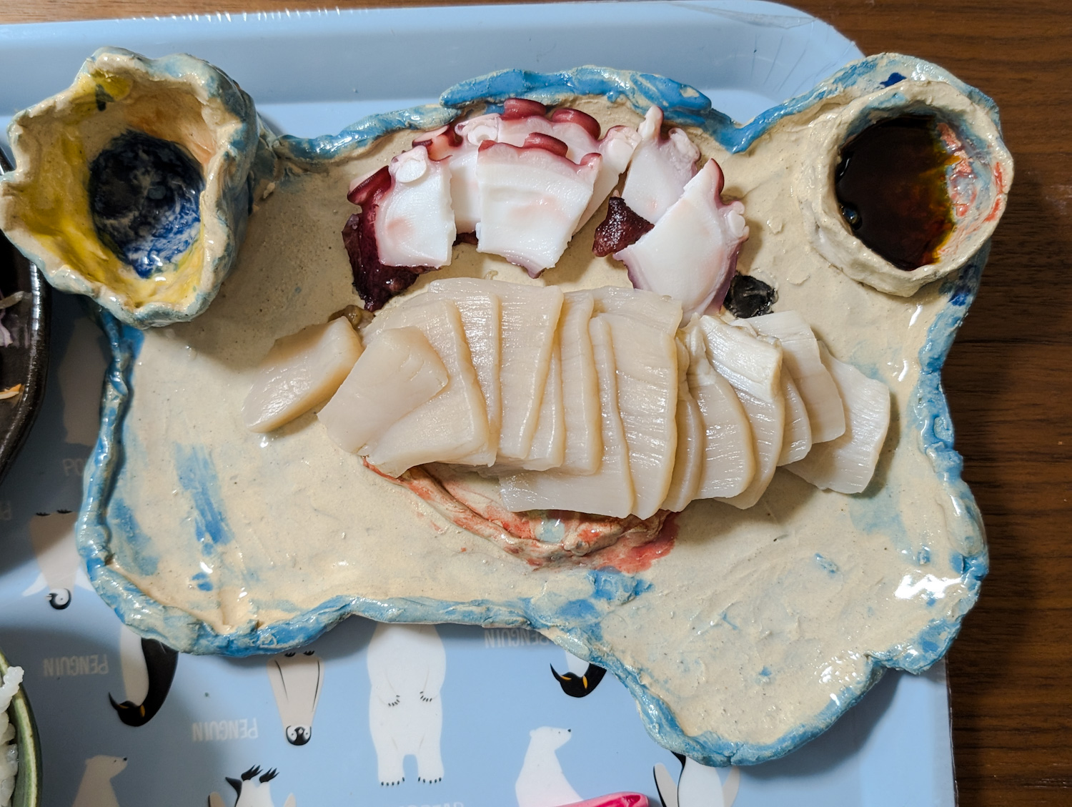 シンプルにお刺身で。おまけで買ったタコも(笑)。