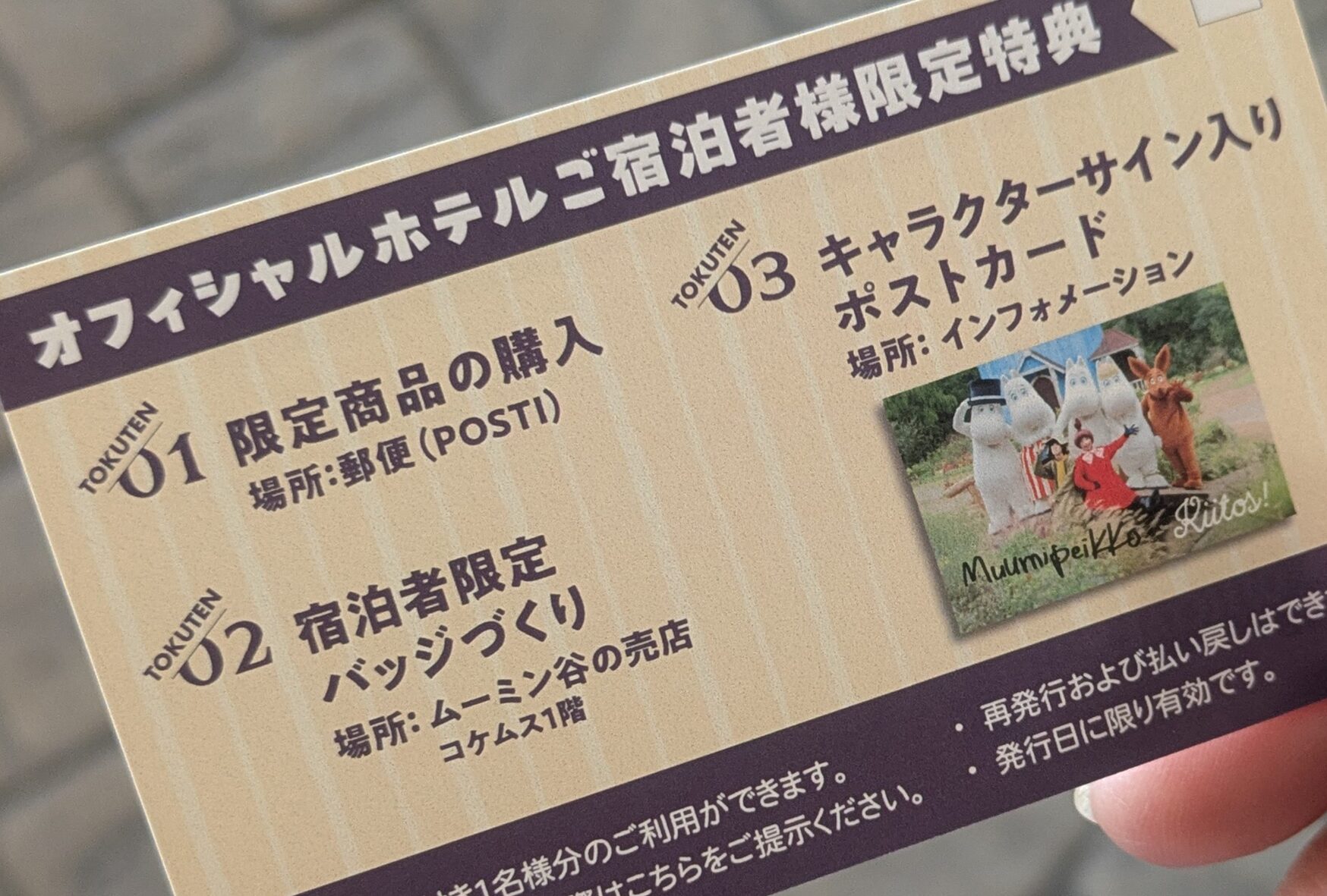 1つ目は、パーク内にあるグッズショップ"POSTI"にて宿泊者限定のグッズが購入出来る権利です。