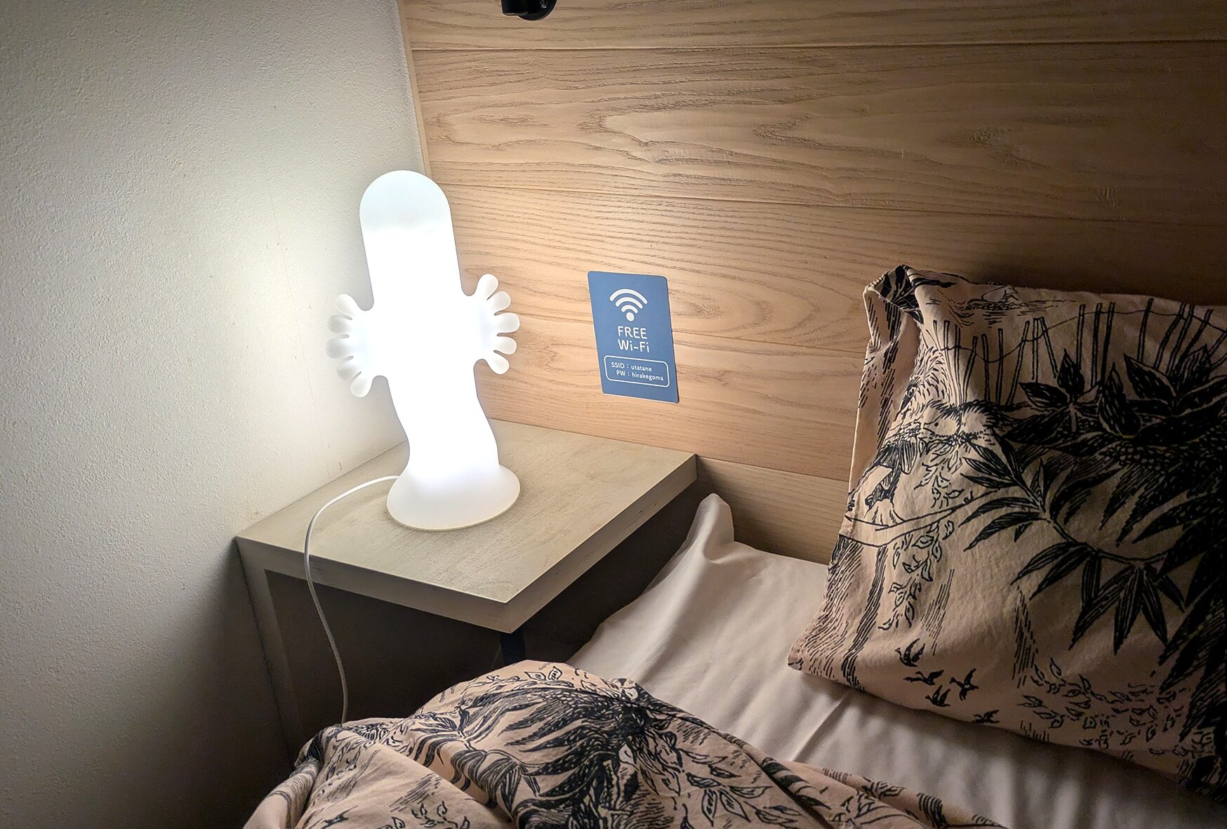 ふとんのカバーや壁に飾ってあるイラスト、備え付けのマグカップも全てムーミンで埋め尽くされていました。可愛い…!