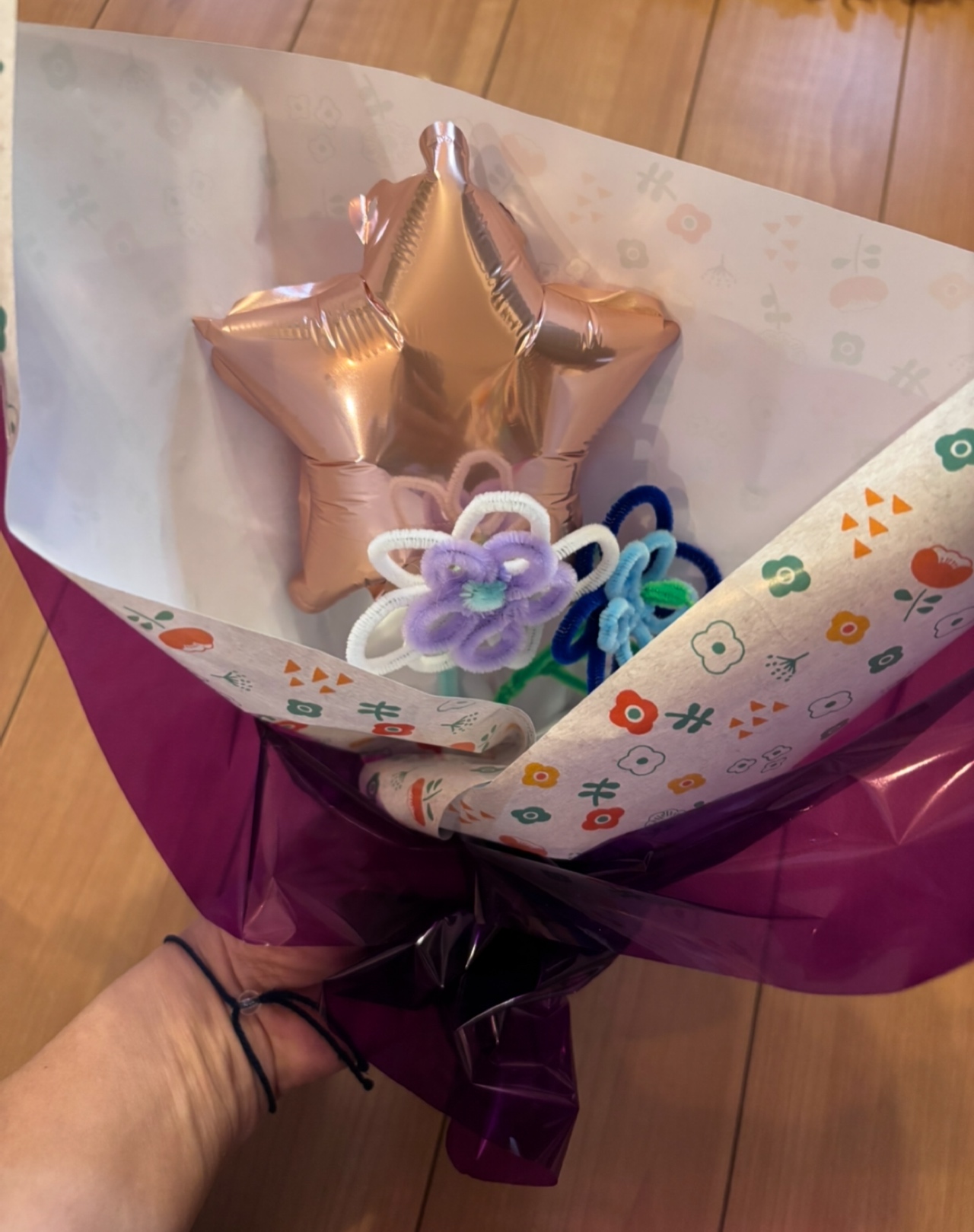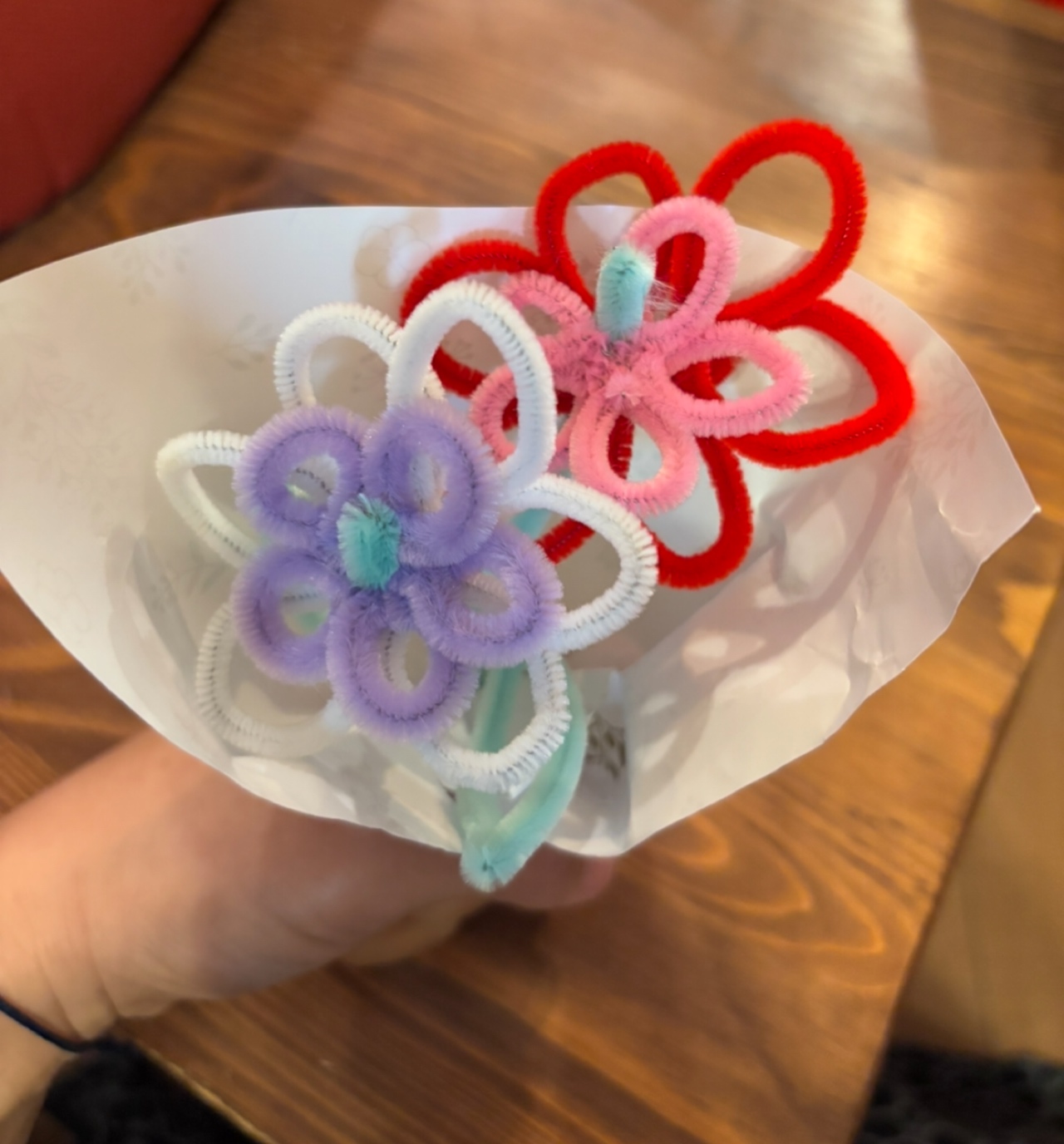 とっても喜ばれた!折り紙やモールで作る、手作り花束がおすすめです