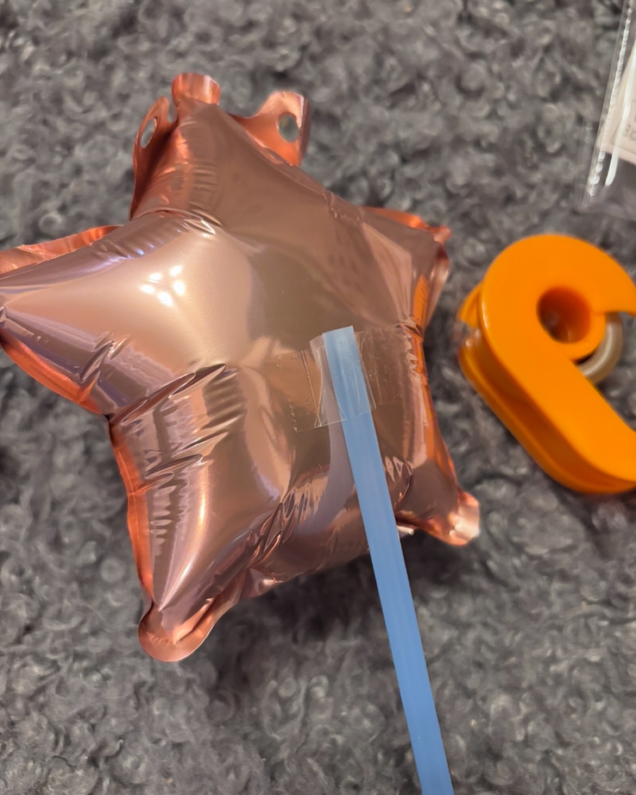 バルーンを膨らましたら、ストローをテープで止めます。