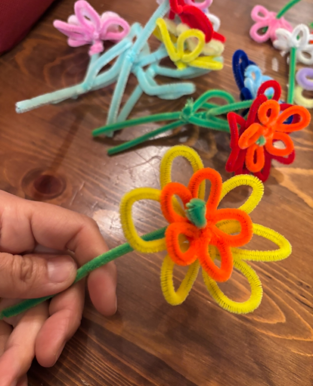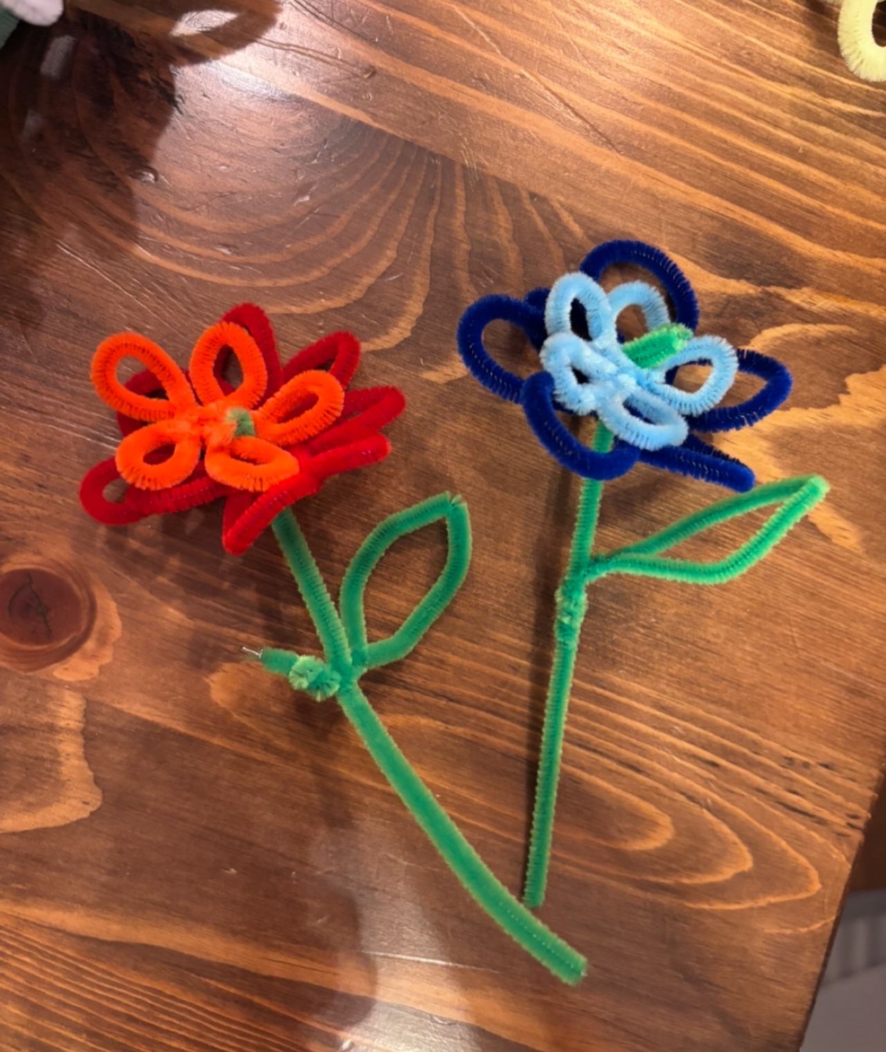 モールで作るお花は、茎もモールで作れちゃいます。