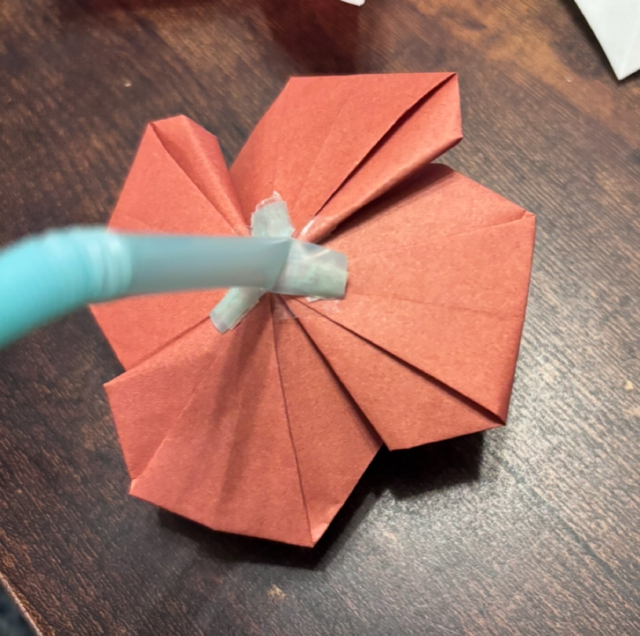 これを先程の、折り紙で作ったバラのお花の裏側に貼り付けていきます。
