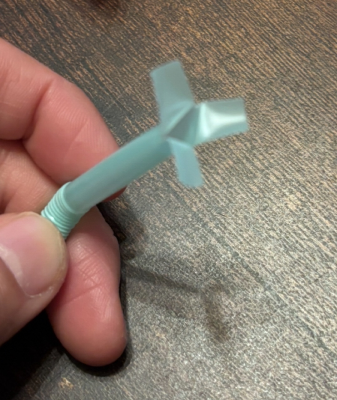 このストローの上の部分に、ハサミで切り込みを3箇所入れます。