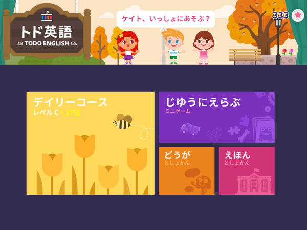 トド英語は、ゲームや絵本などのコンテンツが豊富で、「聞く・読む・話す・書く」の4つの力をバランスよく伸ばせるように作られているのが特徴。音やイラストに合わせて進められるので、遊びながら自然と英語に触れられます。レベルも細かく分かれていて、その子に合ったところから始められます。