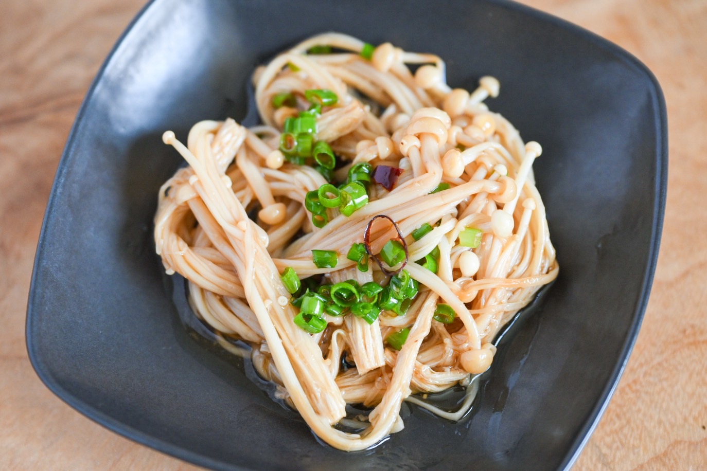 えのきだけと味ぽんをレンジ加熱するだけで、やみつきになるおいしさのひと品に大変身!