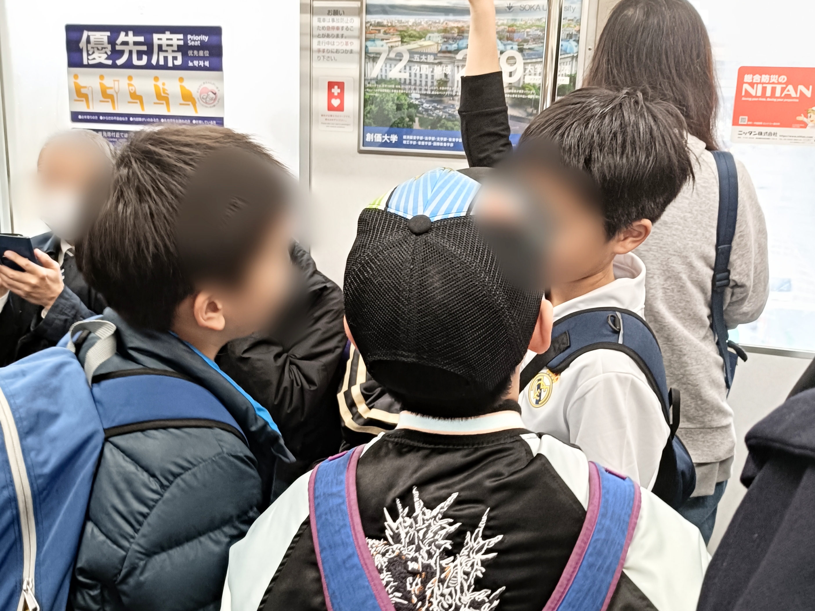 電車の中では、