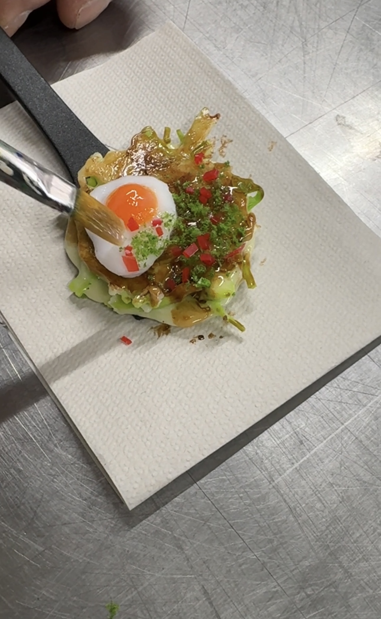 ホットプレートで焼くので、ぱっと見、本物のお好み焼きみたいです。