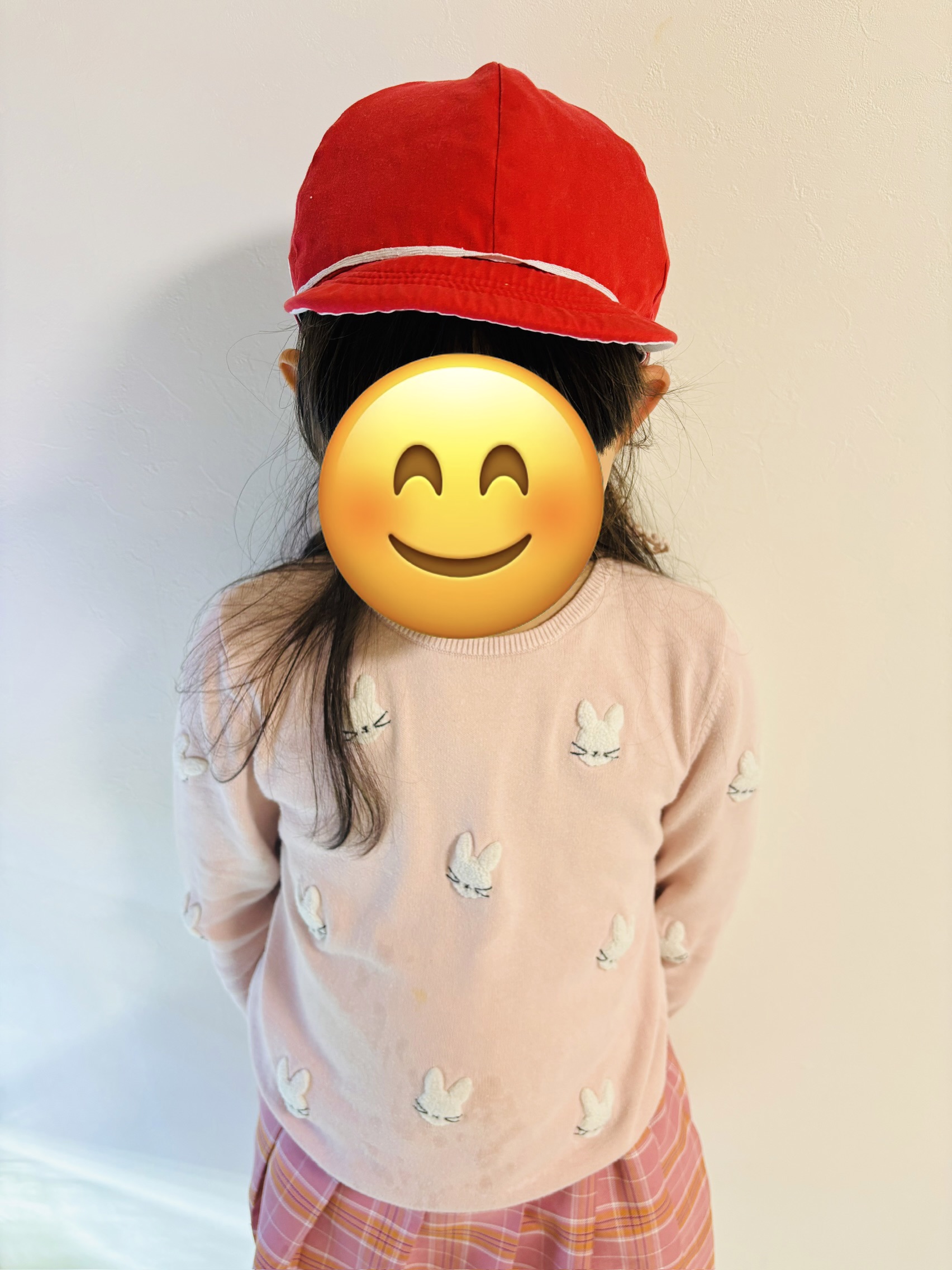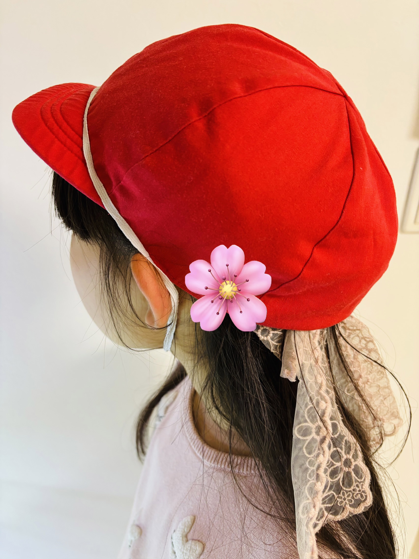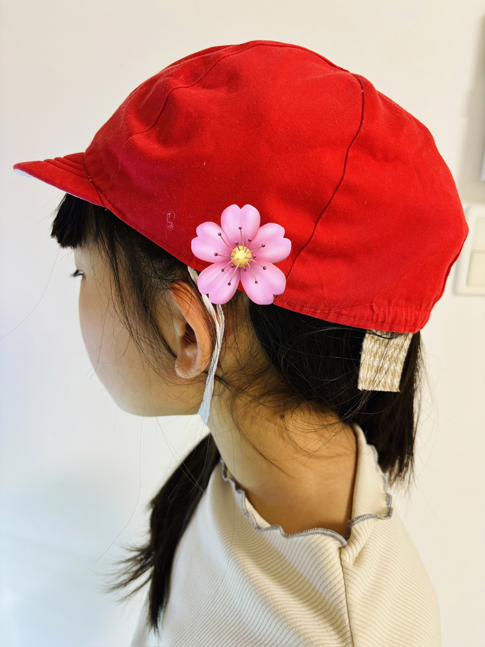 このかぶり方は自分で思いついたようです。体育の着替えの時に赤白帽子のゴムが伸び切っていたのに気づき、思わずこのかぶり方をし、友達に「変じゃない?」と確認。「変じゃないよ〜」と言ってもらえたそうなのです。