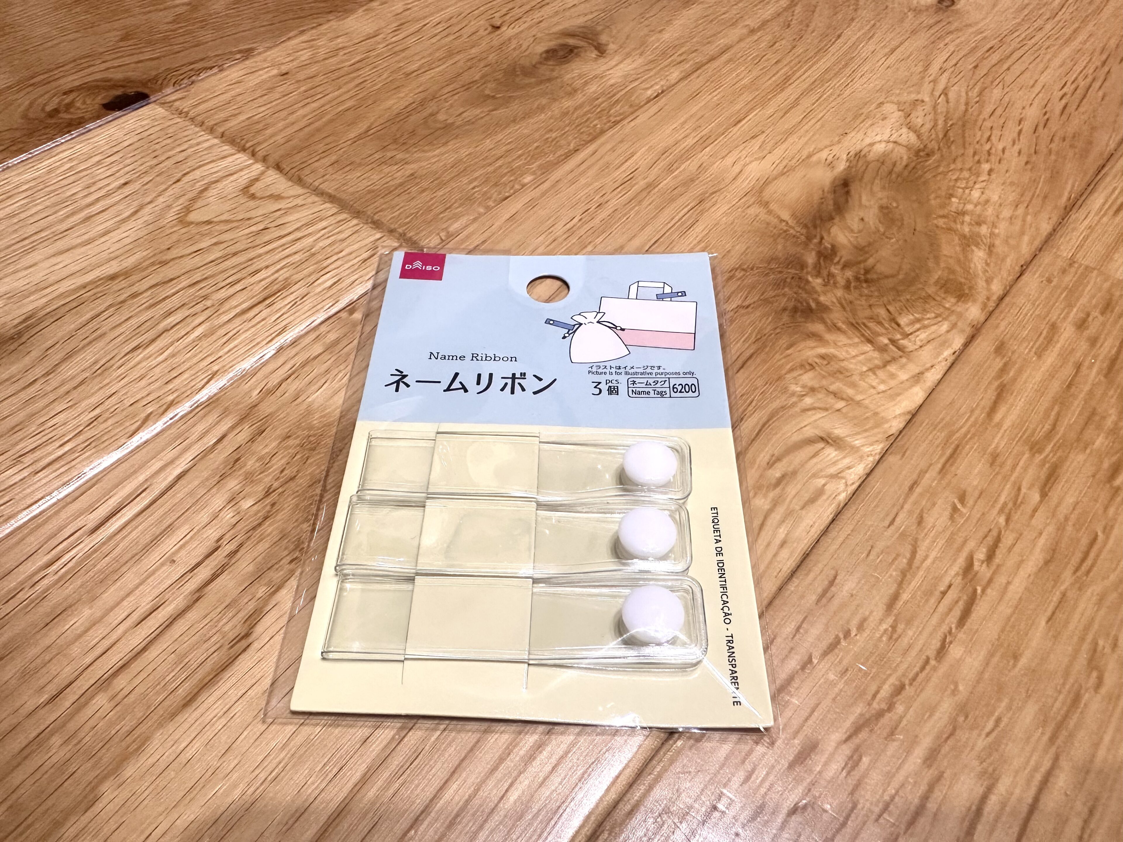 こちらも100円ショップで購入してストックし通園リュックや手提げバッグなどの名前つけに利用することが多いです。リュックには布製のタグを、プールバッグなどの濡れる恐れのあるものにはビニル製のタグを使うなどして使い分けています。