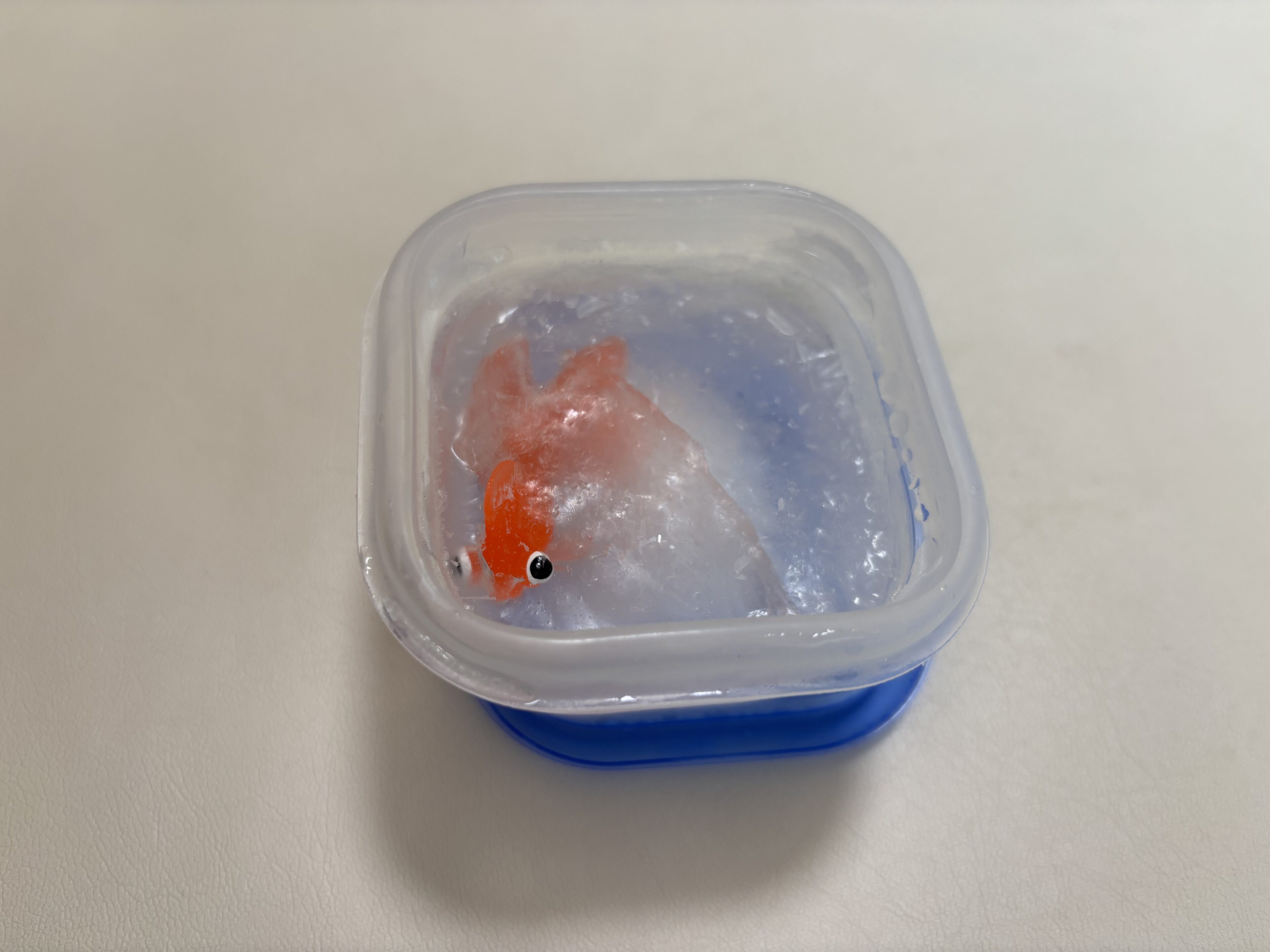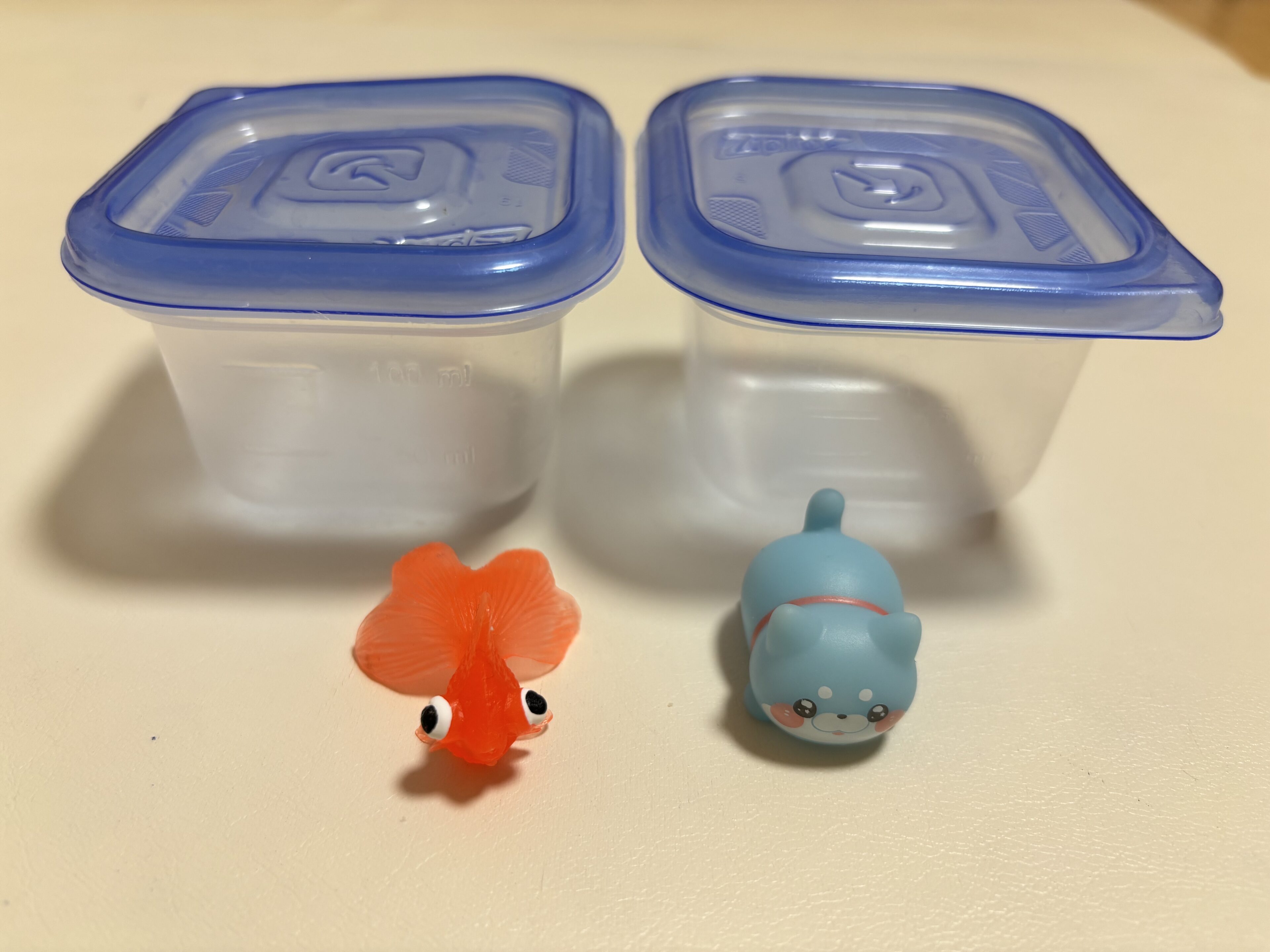 1.製氷皿(もしくはタッパー)におもちゃと水を入れる