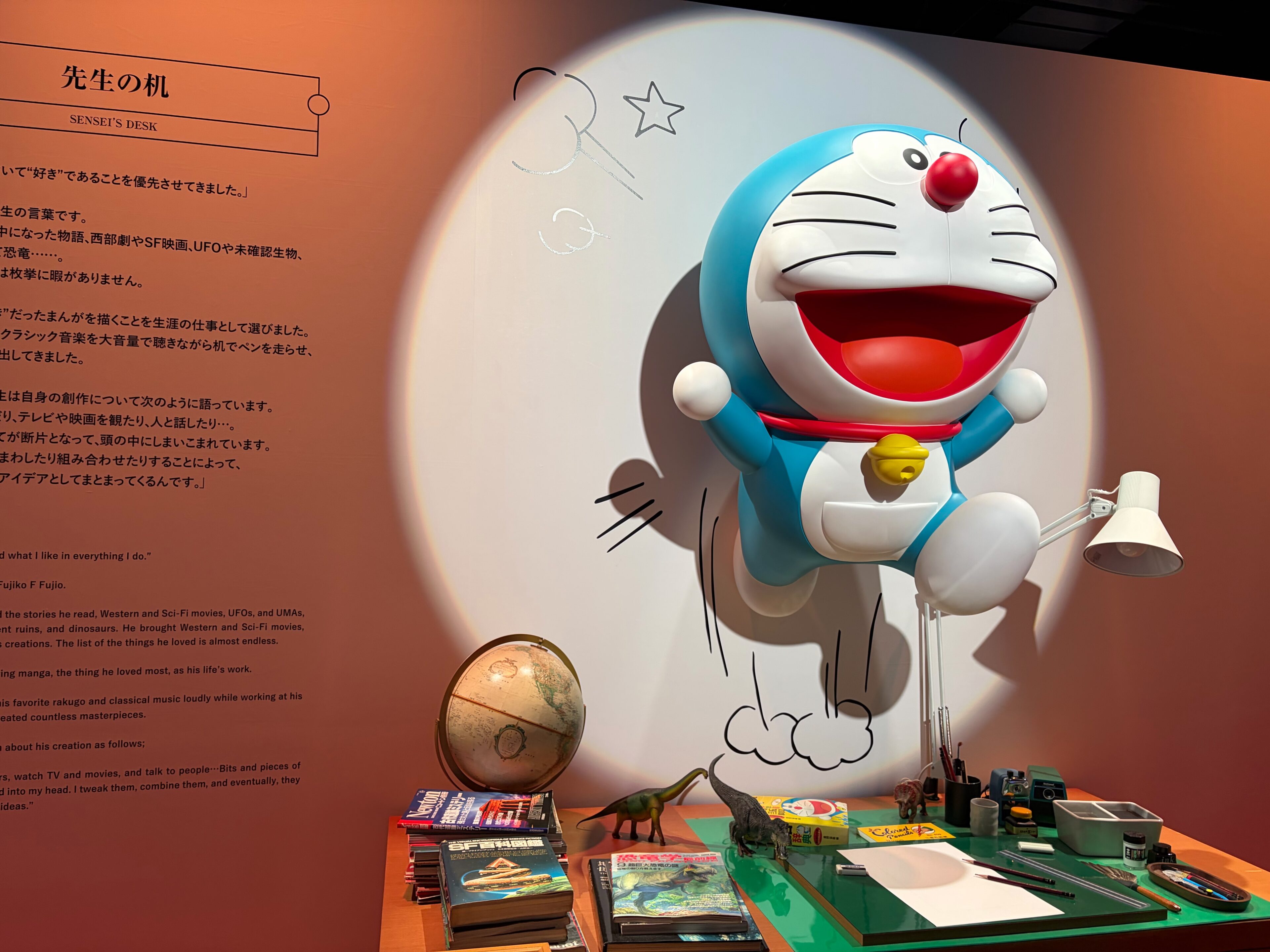 藤子・F・不二雄先生の仕事場を再現した「先生の机」の展示もあり、実際の創作現場の雰囲気を感じられて、大人としても興味深い空間でした。