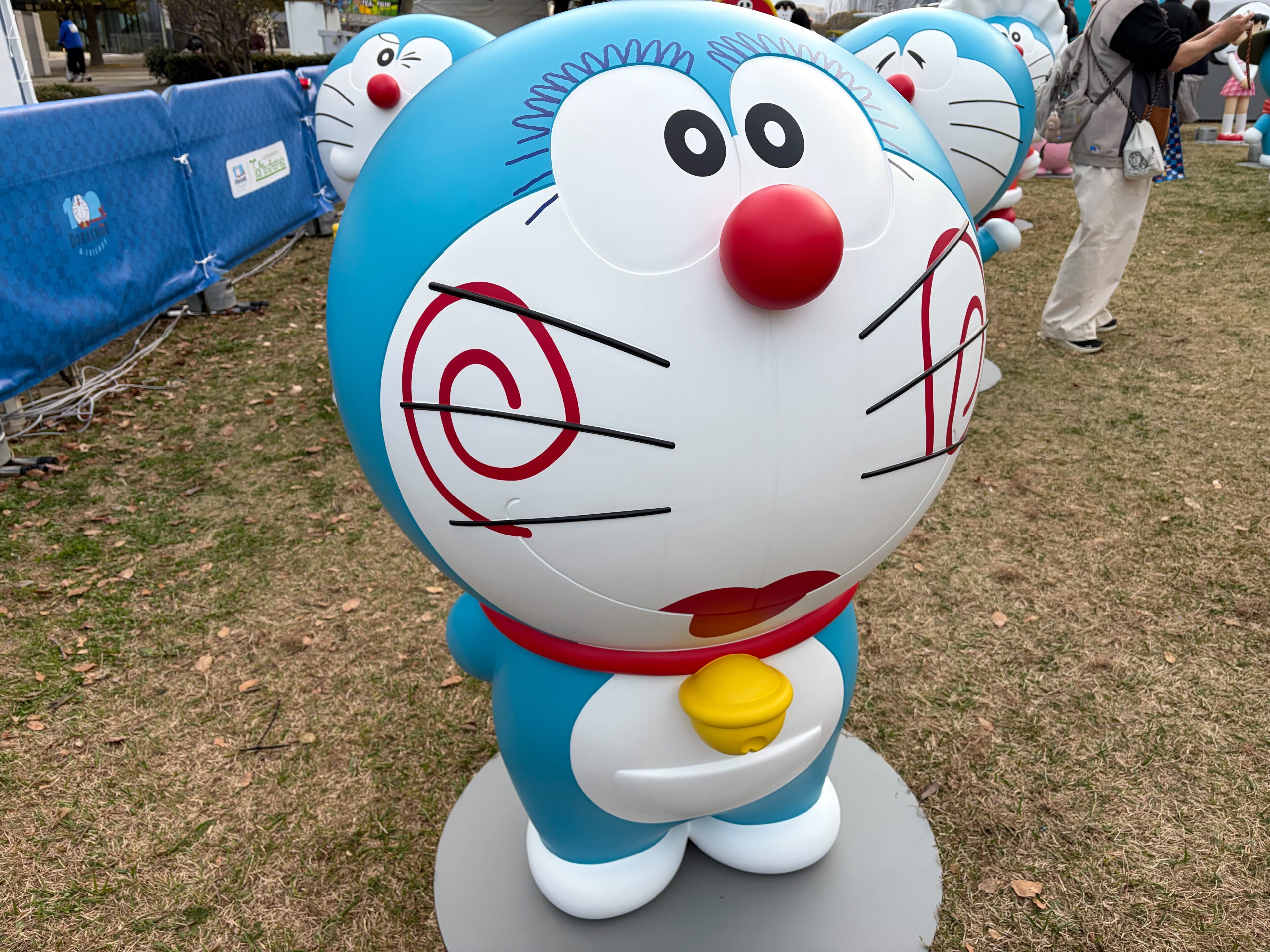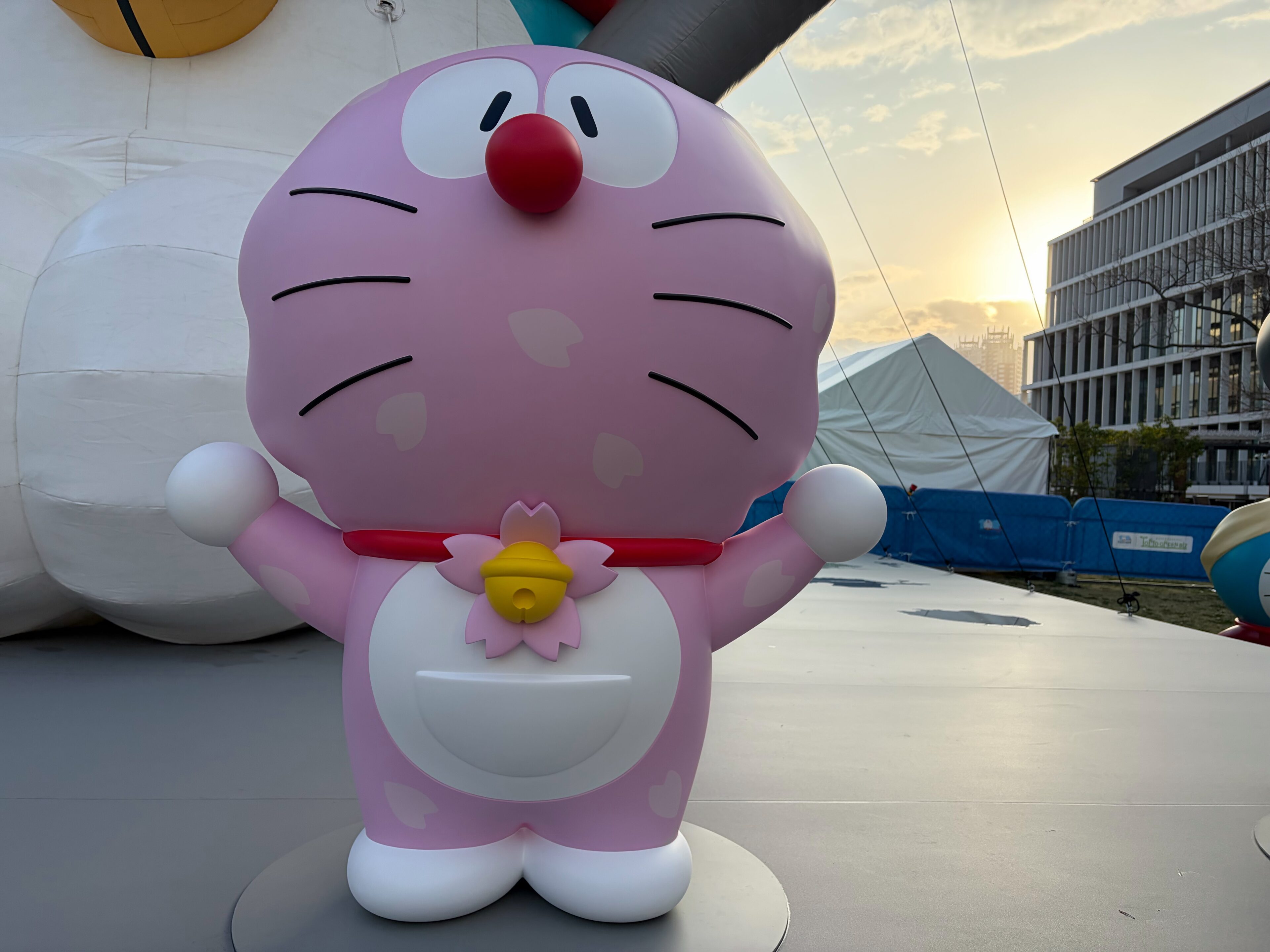ここには、全長12mの巨大ドラえもんバルーンと、個性豊かなドラえもん約70体が大集結!迫力満点の広大なフォトスポットになっていました。「100%ドラえもん&フレンズ in 東京」オリジナルの柴犬ドラえもん、おにぎりドラえもん、桜ドラえもん、おすもうドラえもんもとても可愛く、中でも桜ドラえもんが特に人気のようです。
