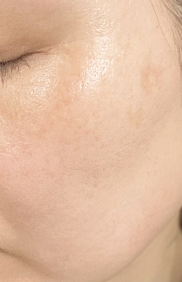 10分ほどおいて顔から取ってみると、水分や油分が適度に肌に残っていて、しっとりとしたツヤ感のある仕上がりに感じました。