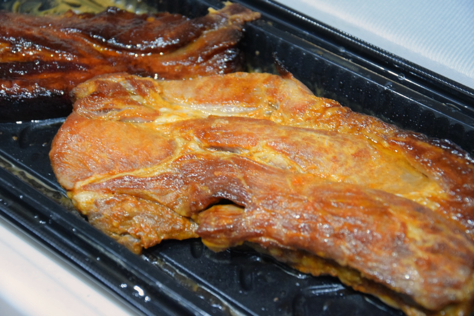 100gあたり248円とまずまずのコスパ。大きな豚肩ロースが2本入っており、デリカコーナーでひときわ存在感を放っていました。