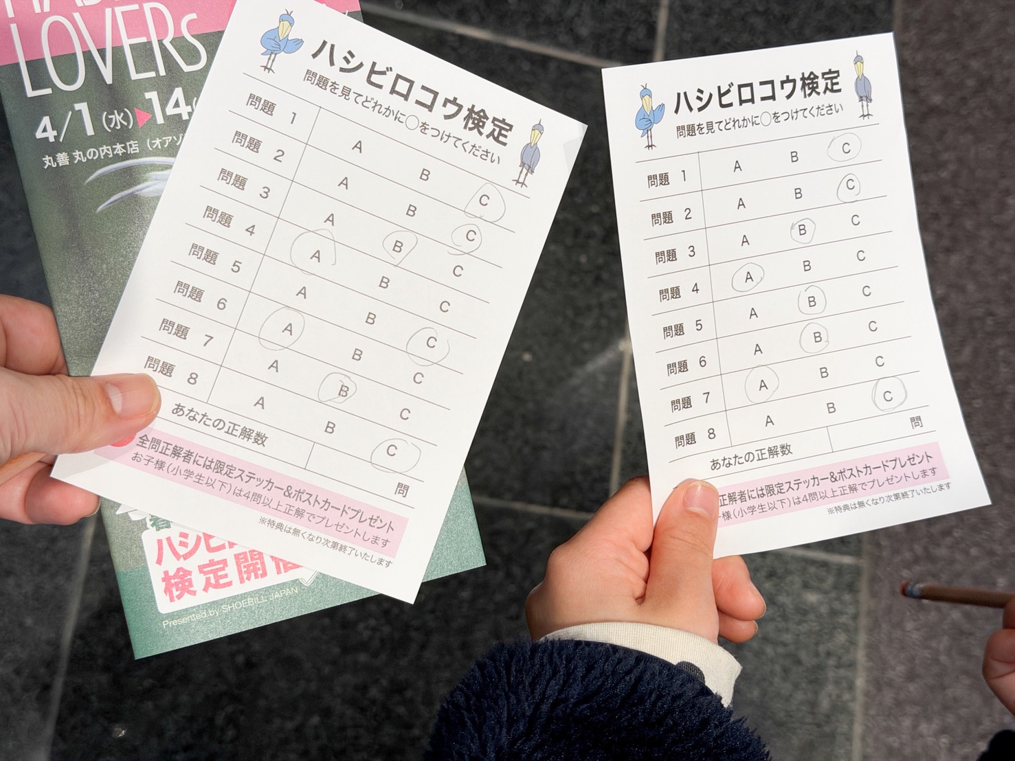 大人は全問正解、子どもは4問正解でステッカーがもらえます!