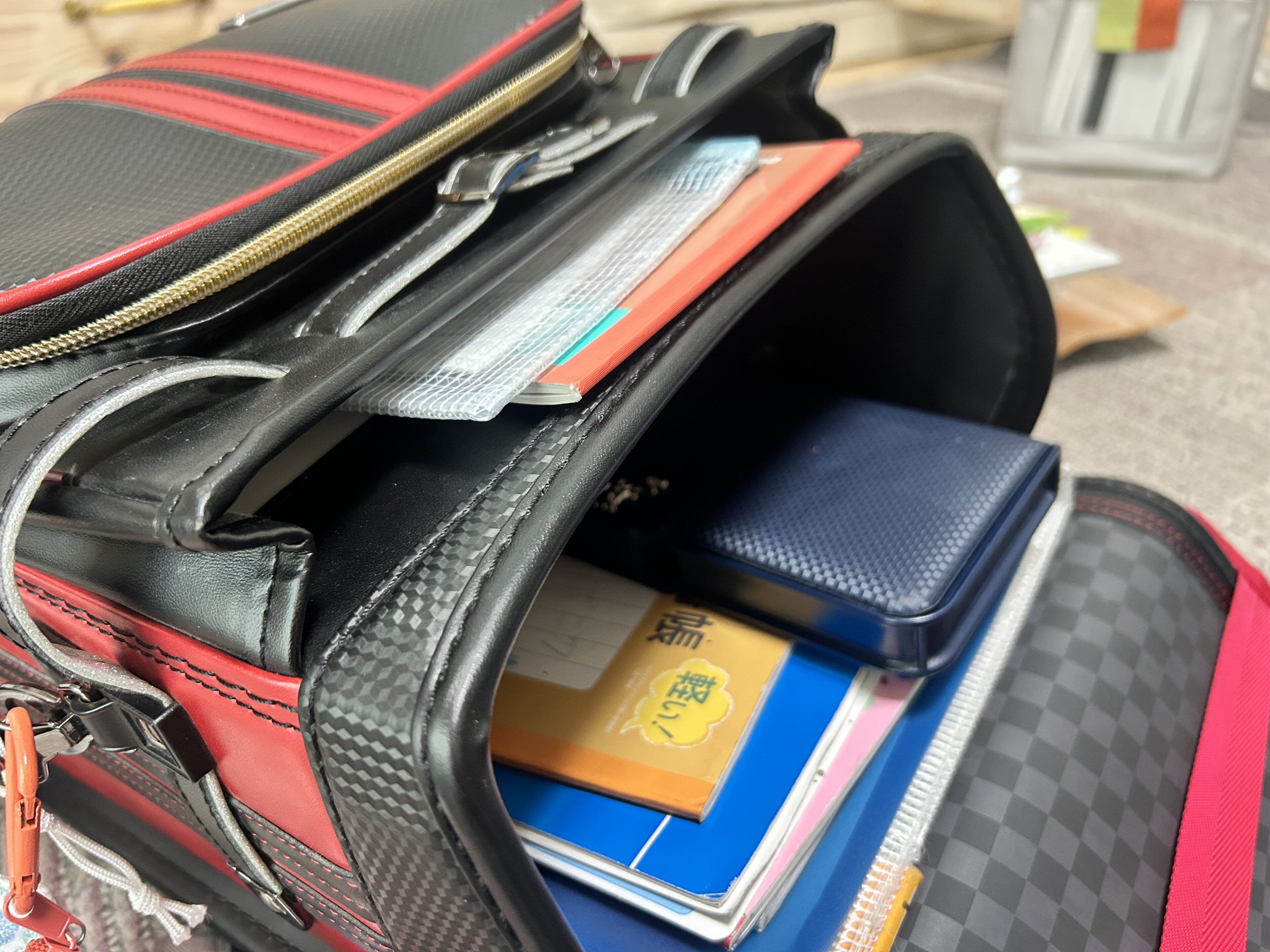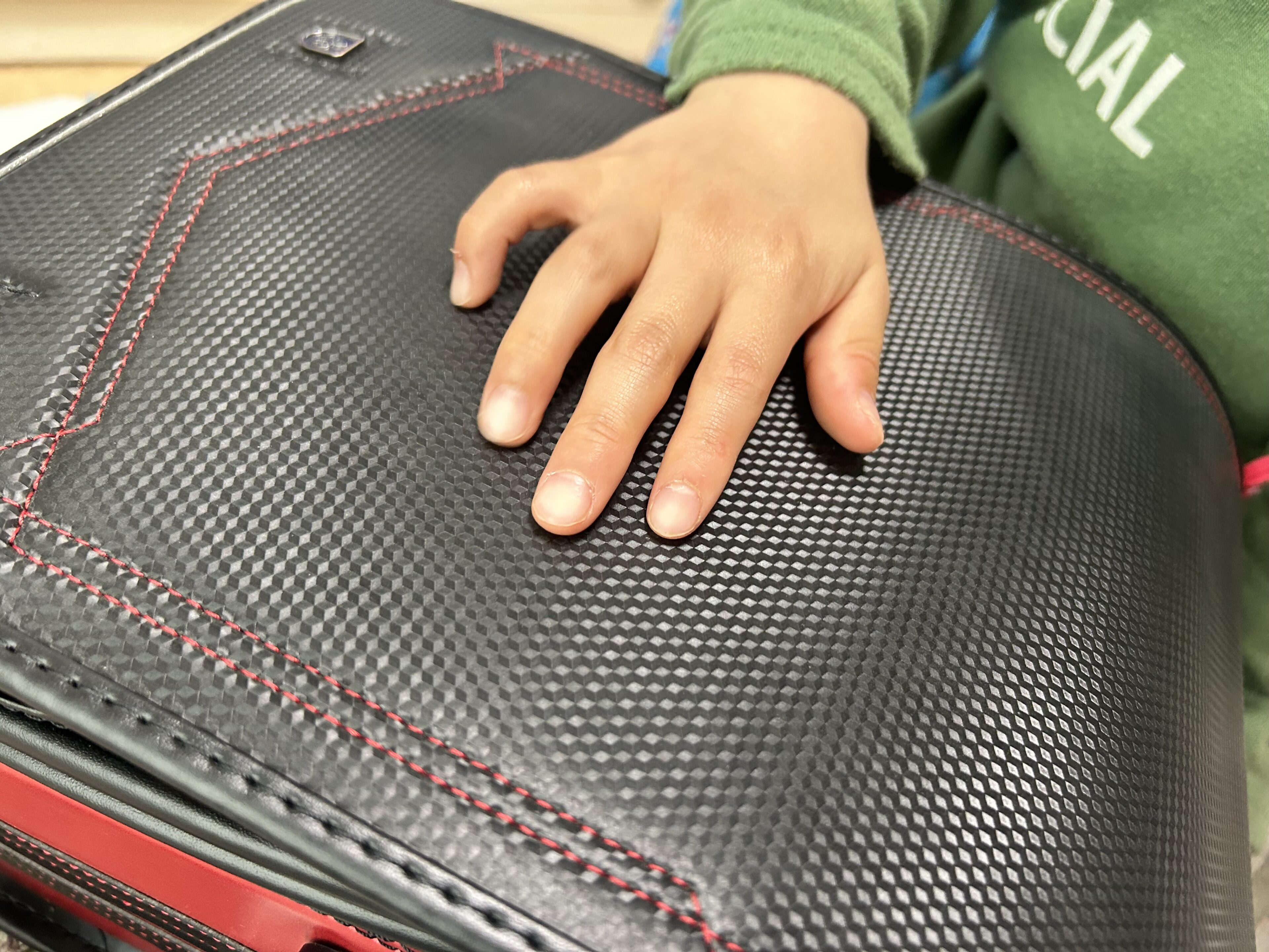 元々黒系で考えていたランドセル、他にも色々見て回りましたが、この個性的なカブセの模様がかっこよく、息子の中で「これしかない」とかたまったようです。