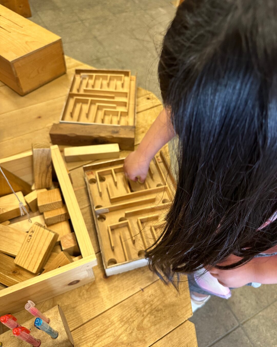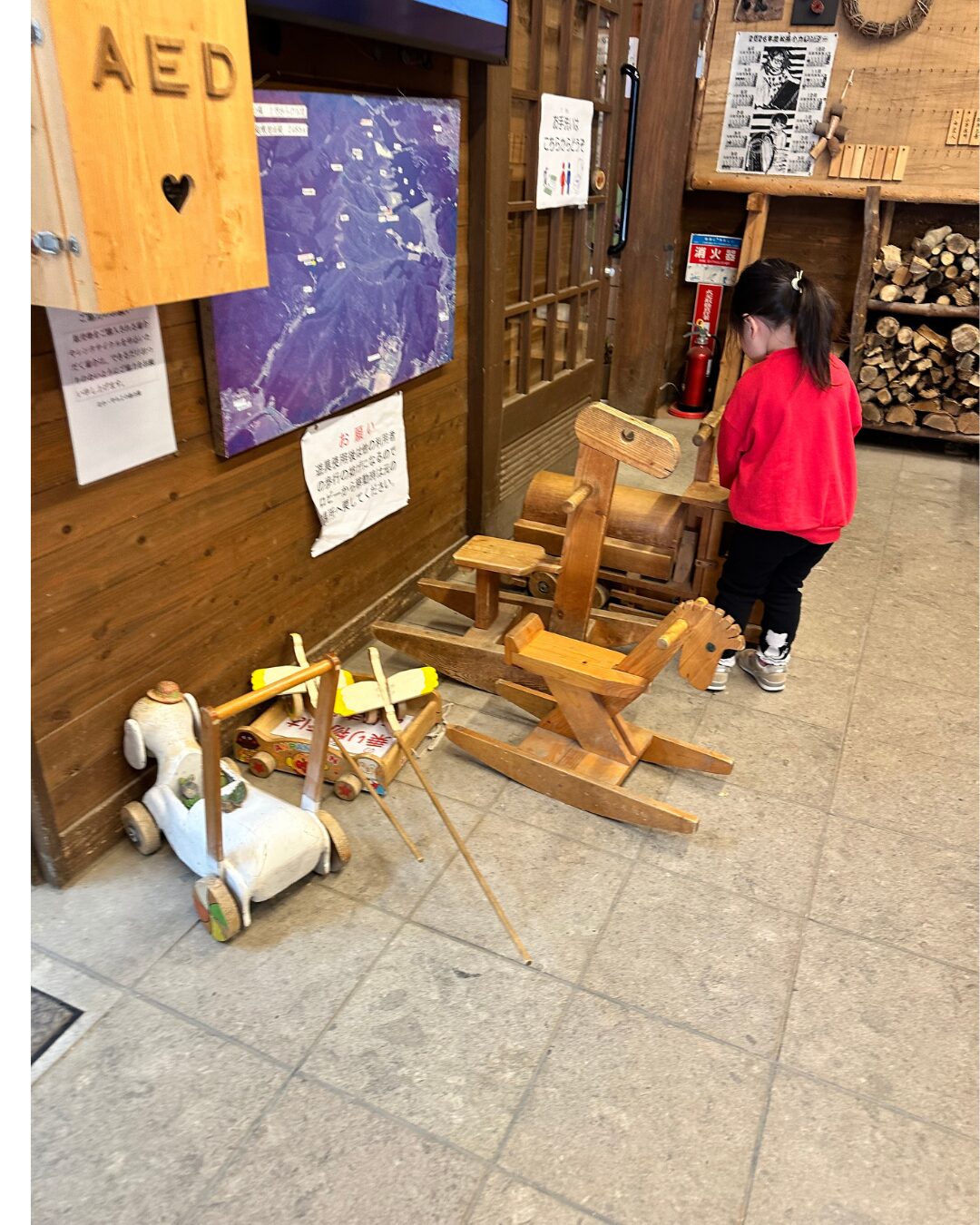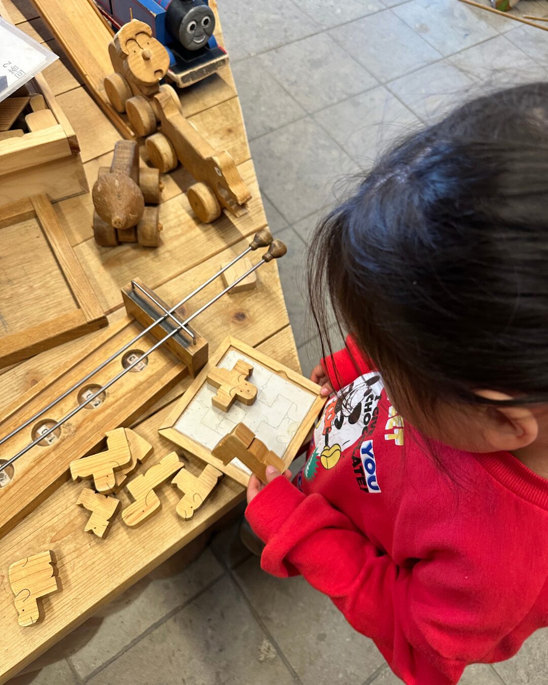 子どもたちは、木で作られたおもちゃやアイテムに一目散。