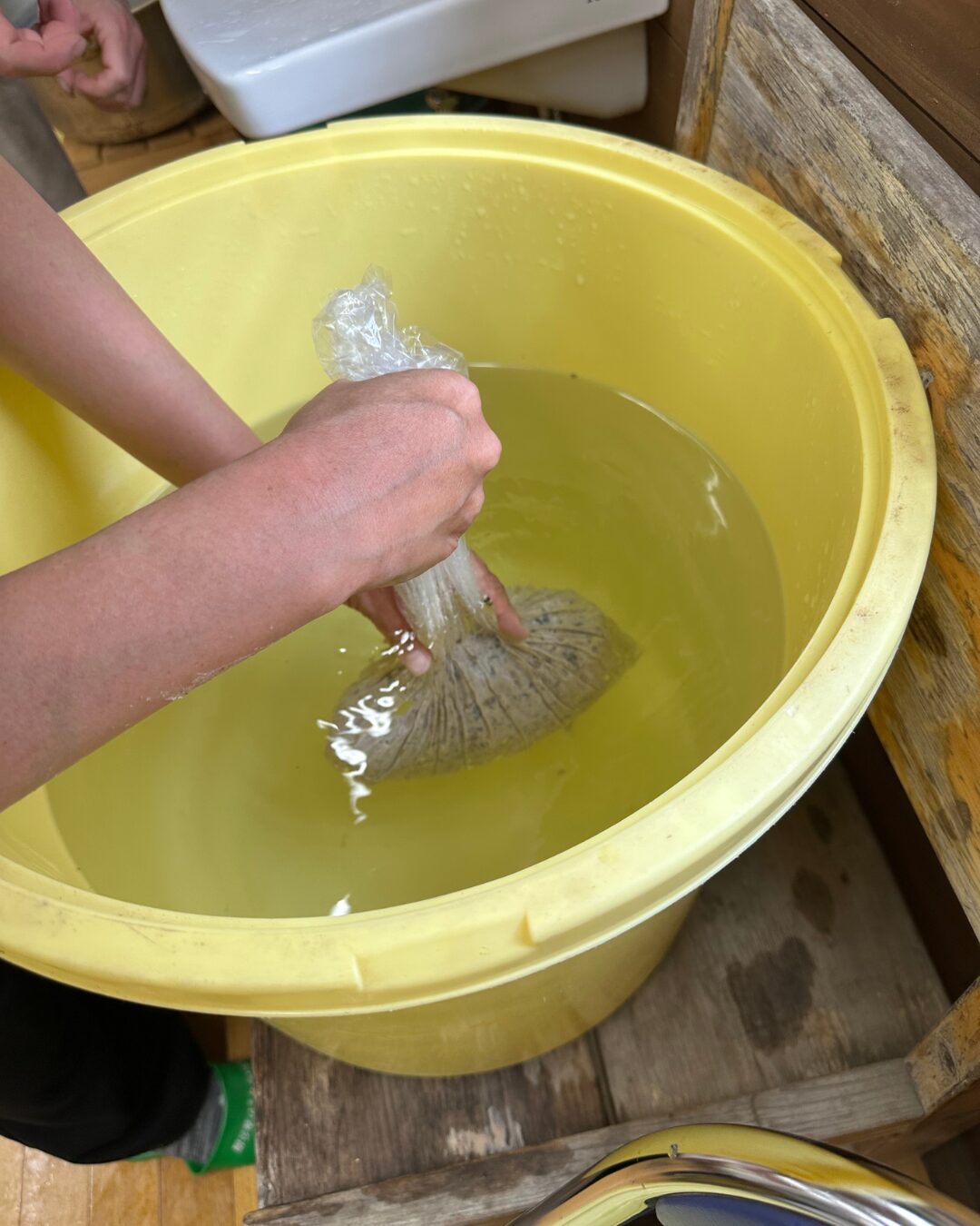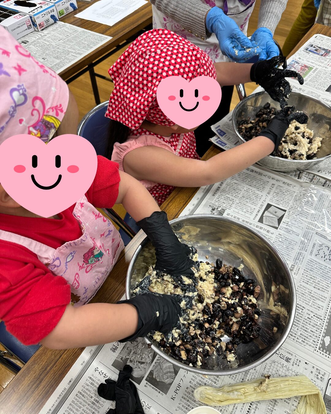 麹の独特なにおいに、子どもたちが「くさい〜!」とギブアップ。