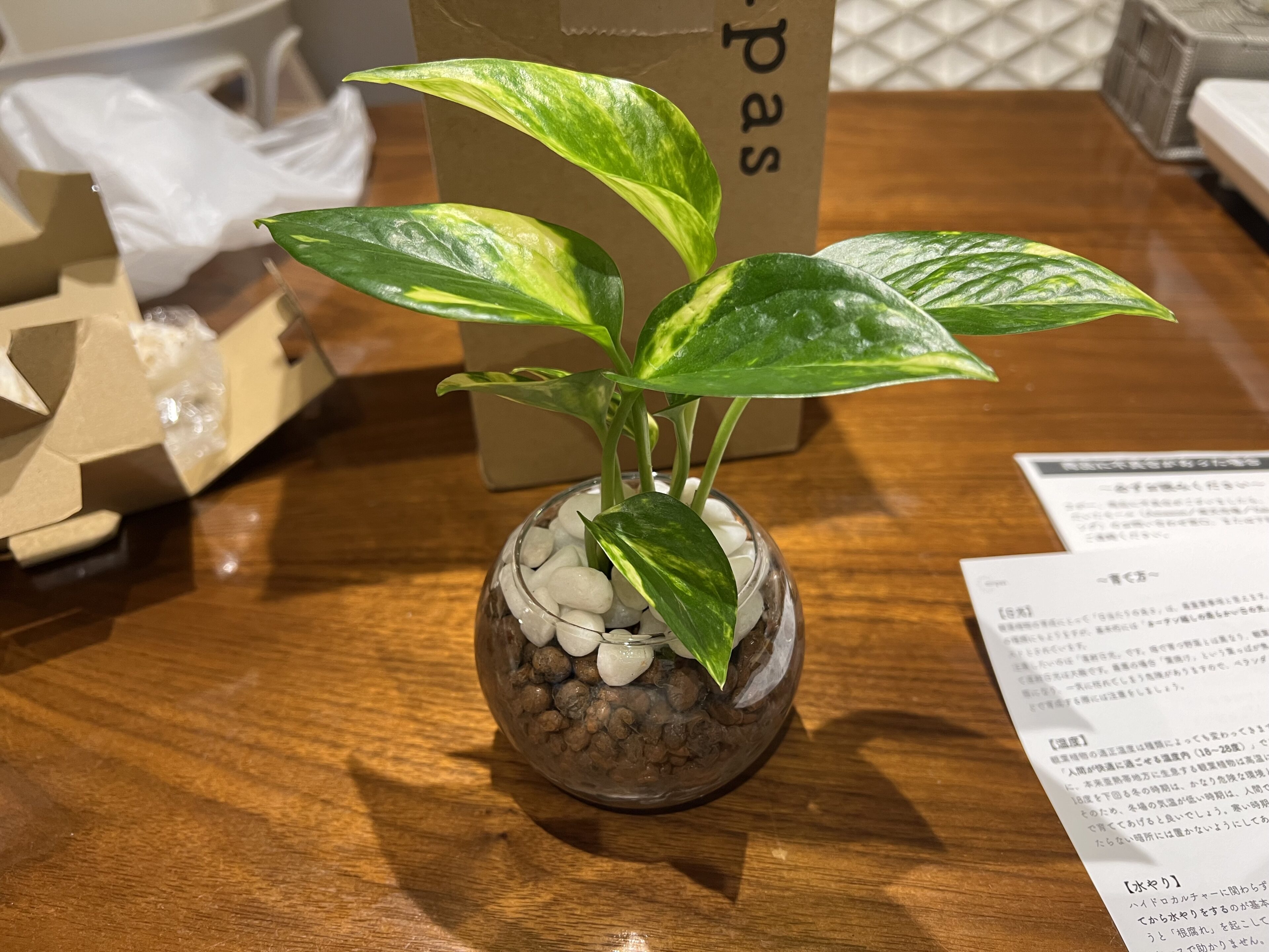 開けてみると、しっかり梱包されていて、写真通りの元気なポトスが出てきました。