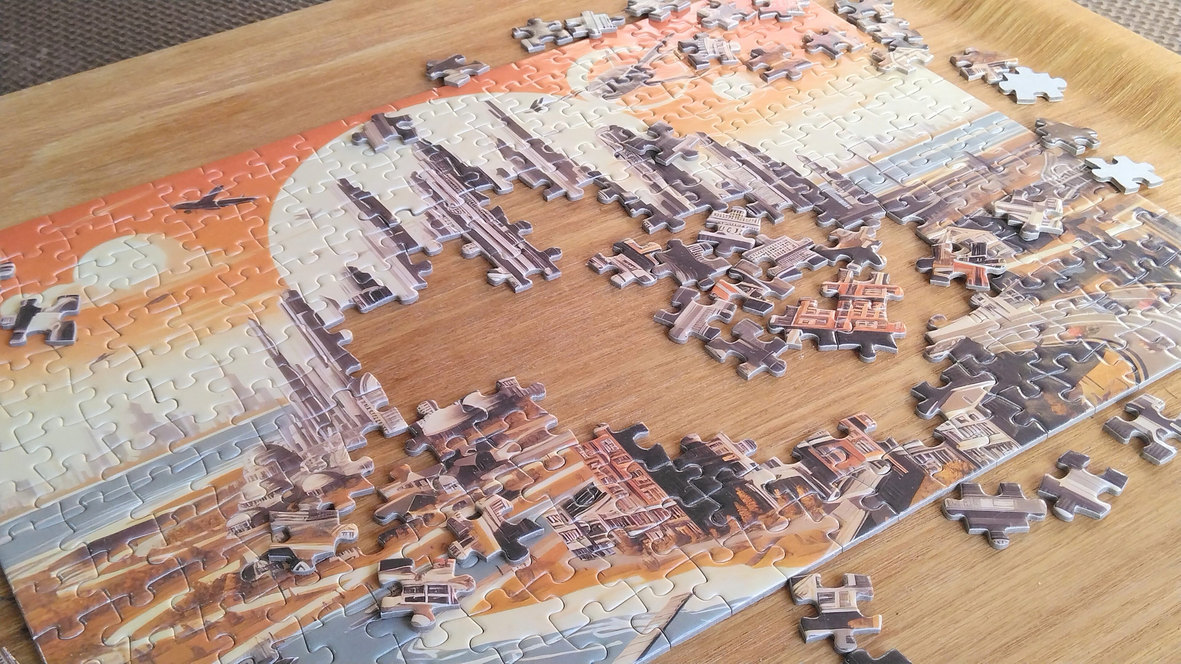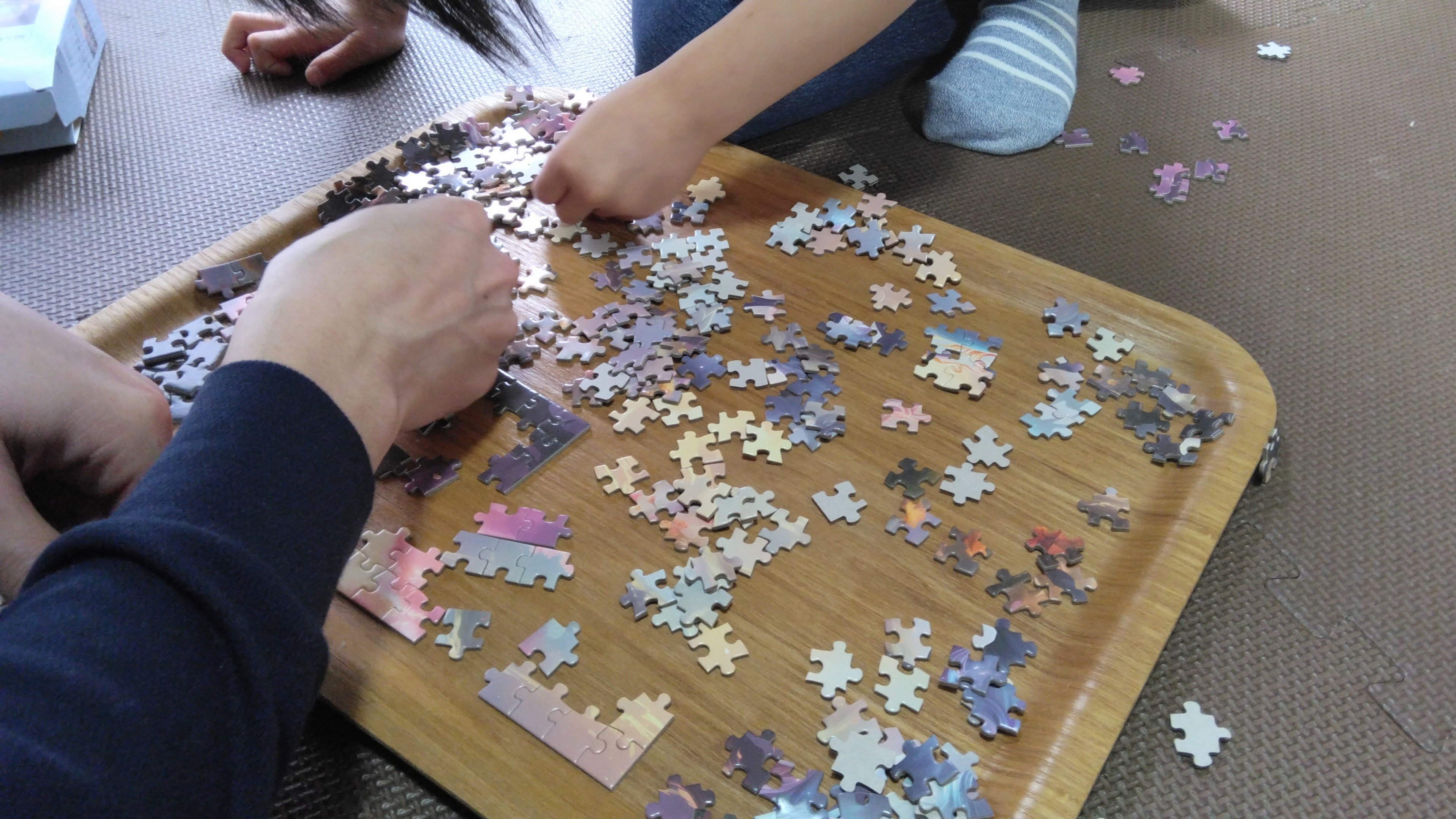 脳への効果、リフレッシュ効果、いろいろあるのでしょうが、わたしが1番感じたのは「家族円満」効果。家族がスマホをいじっているところが気になる経験をお持ちの方、いらっしゃいませんか?調べ物だったり、誰かとの連絡だったり、何かしら必要に迫られての使用だとしたら仕方がないのですが…。「何やってるかわからない」から、憶測を立てて、ときにイライラしてしまいます。それに比べるとジグソーパズルはわかりやすい!誰がどう見ても「ジグソーパズルやってる」(当たり前)。5歳の娘も興味津々、触発されて自分のパズルを持ち出すこともあります。