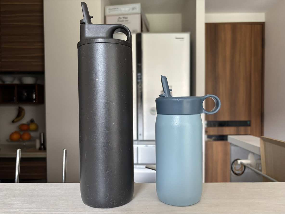 一方で、真夏やスポーツの日はしっかり飲むので、480mlであっても結局足りません。そこでわが家は、800mlのアクティブタンブラーを併用するようにしています。