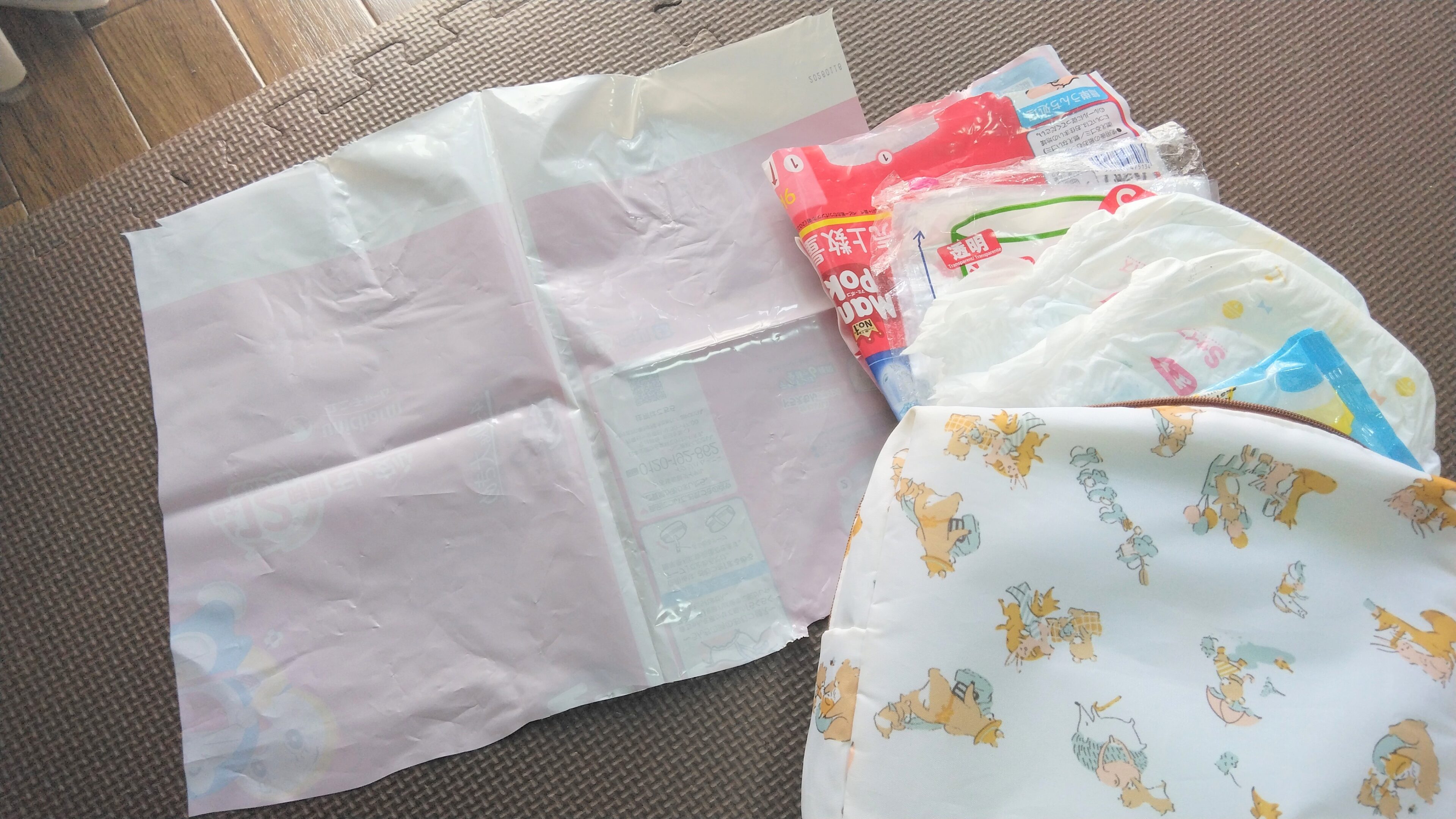 何に使うかといえば、おむつ替え時の下敷きです。おむつを交換する時にうっかり背中漏れしてしまったり、タイミング悪くおしっこが出てしまったり。そんなトラブルに備えておむつとお洋服の間に挟んで使用しています。使用済みおむつといっしょにくるくると巻いて持ち帰り用の袋に入れると、防臭効果も高まるように感じています。衛生面でも安心で楽ちんです。