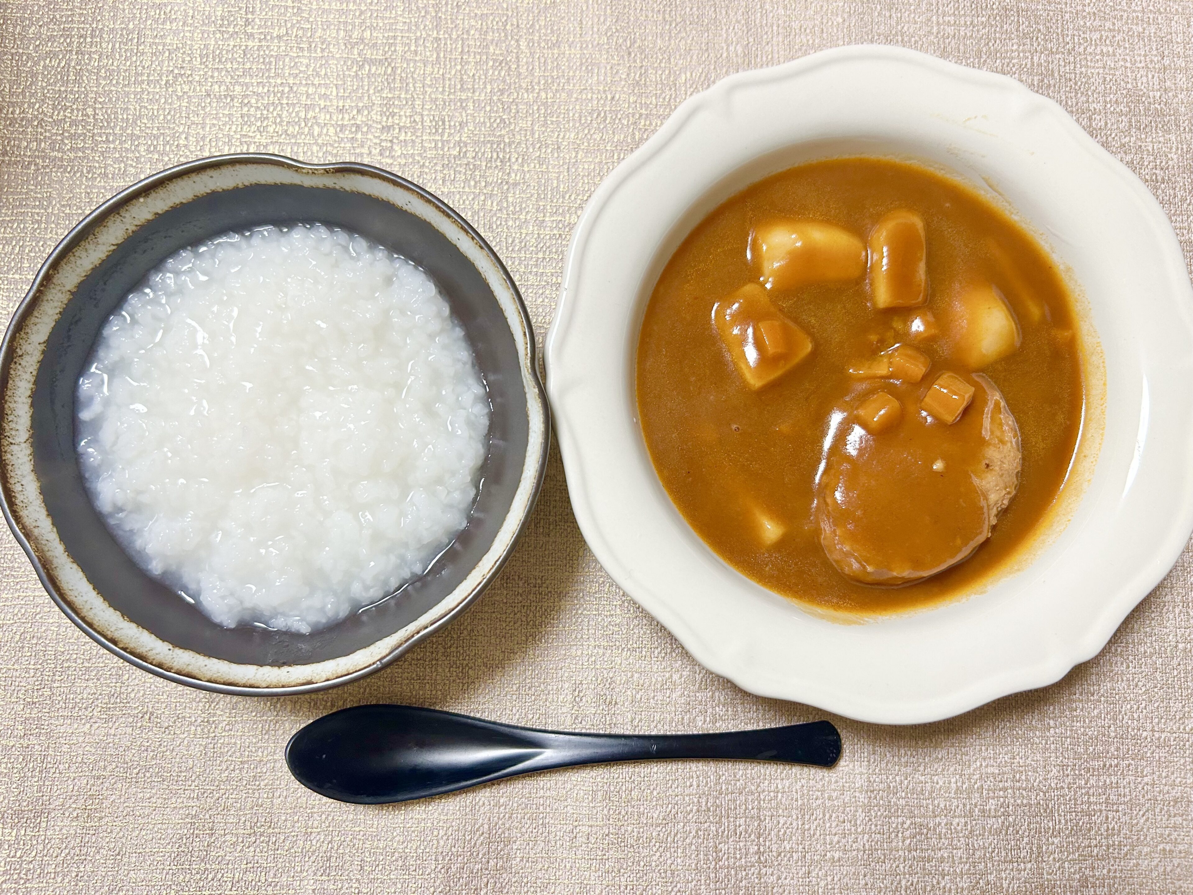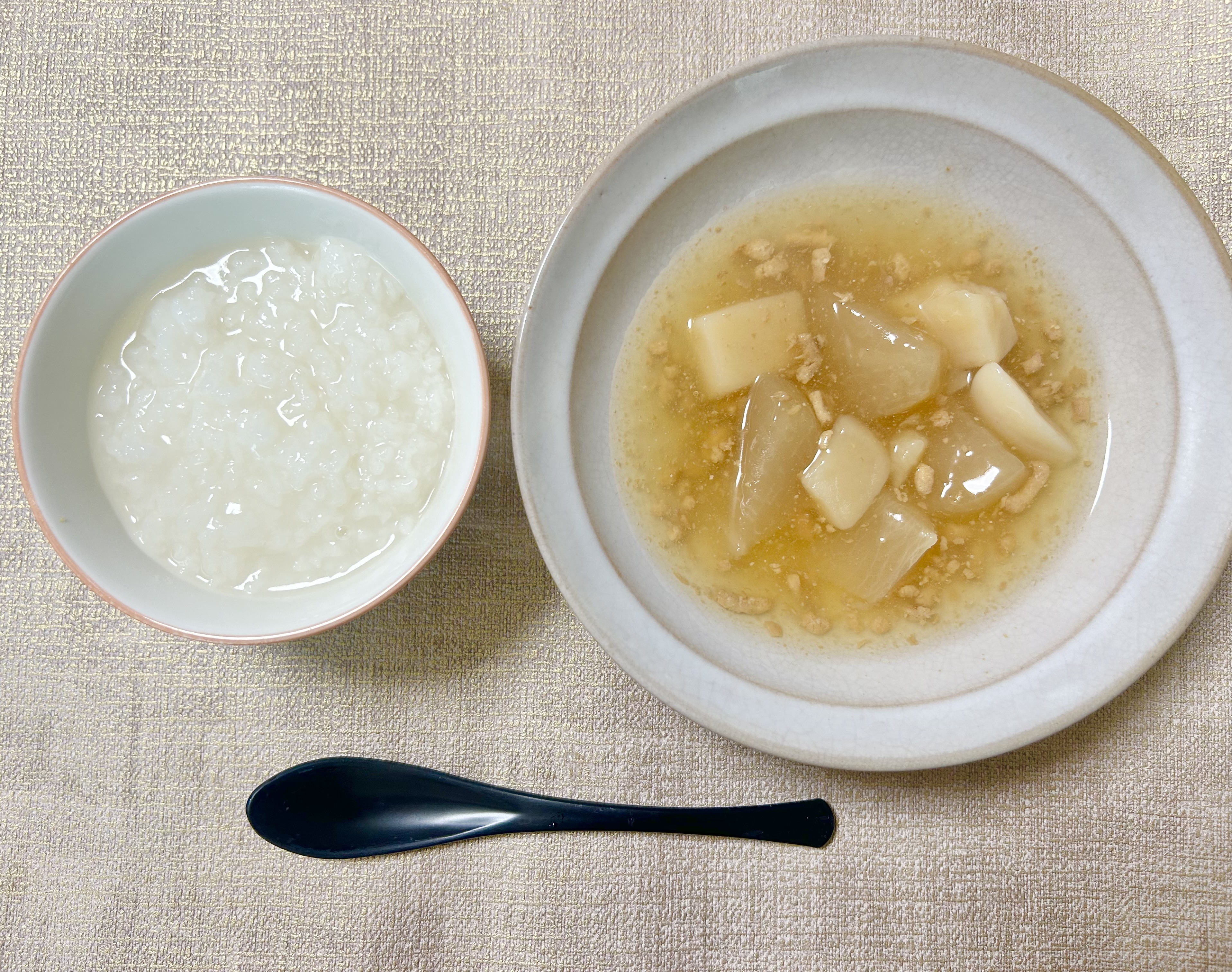 昼は大根とじゃがいもの鶏そぼろあんかけと白がゆ、