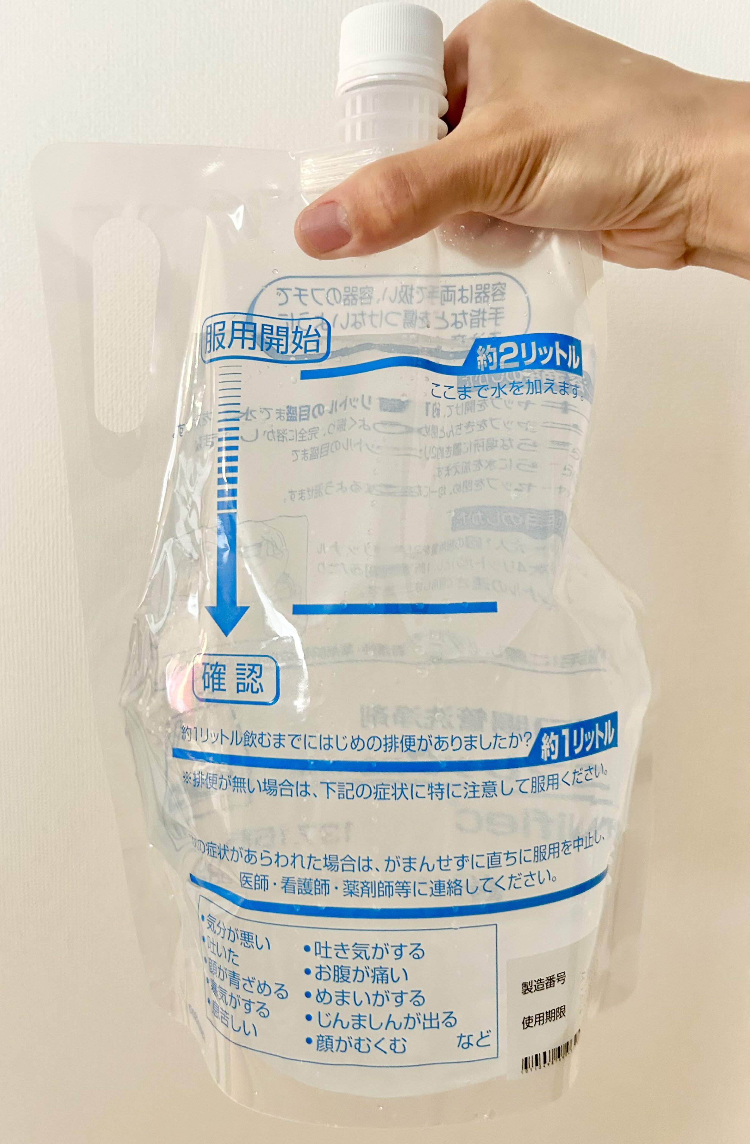 下剤を飲みながら白湯などの温かい飲み物を間に挟みながらの方がラクだったかもしれません。