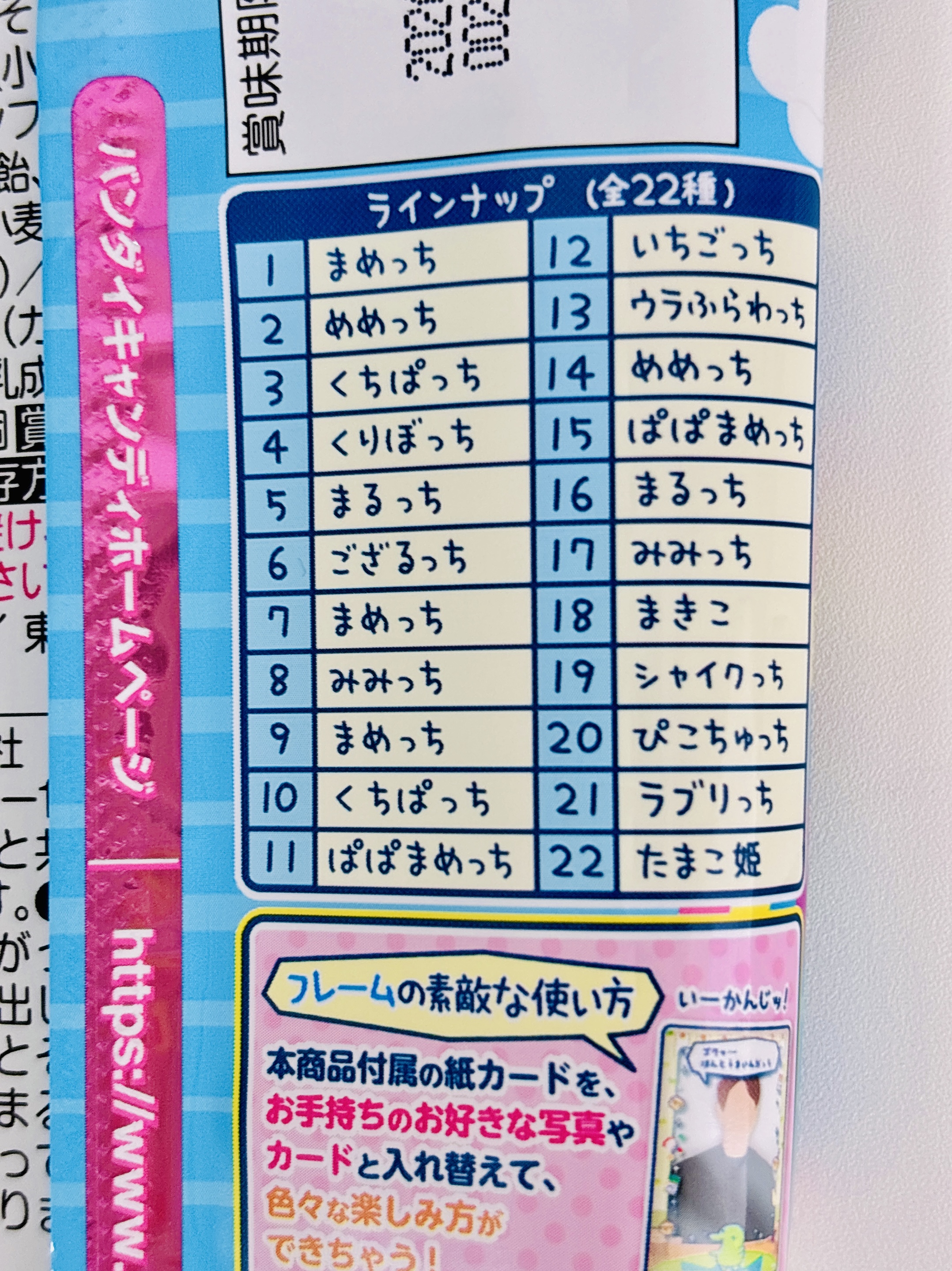 全22種です!どれも馴染のキャラクターばかりでつい集めたくなってしまう。娘たちの推しは、くちぱっちとみみっち!22種もあると推しに会えないかもしれないドキドキ。ブラインド商品の楽しみ方ではあるものの、これは出る確率低そう。
