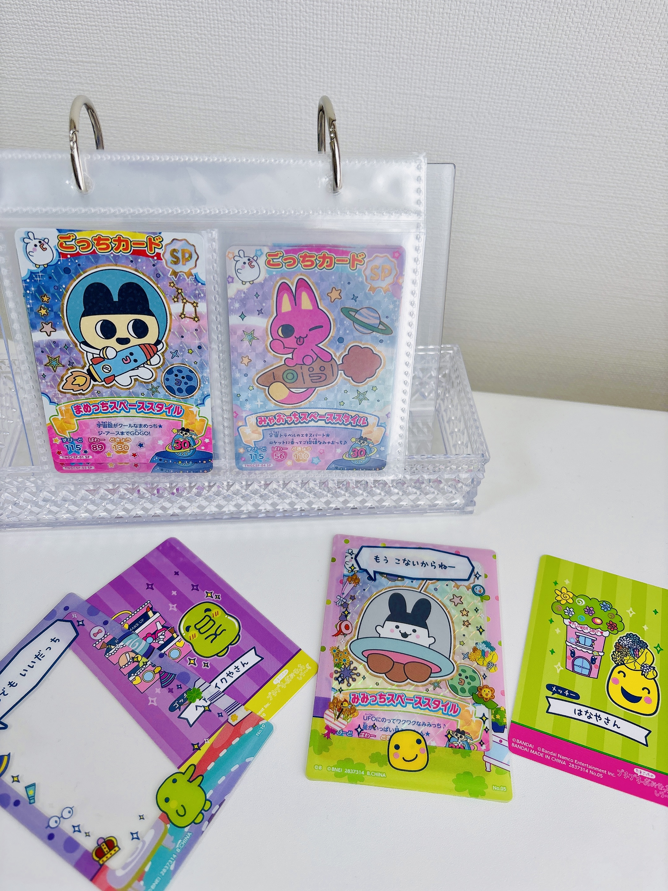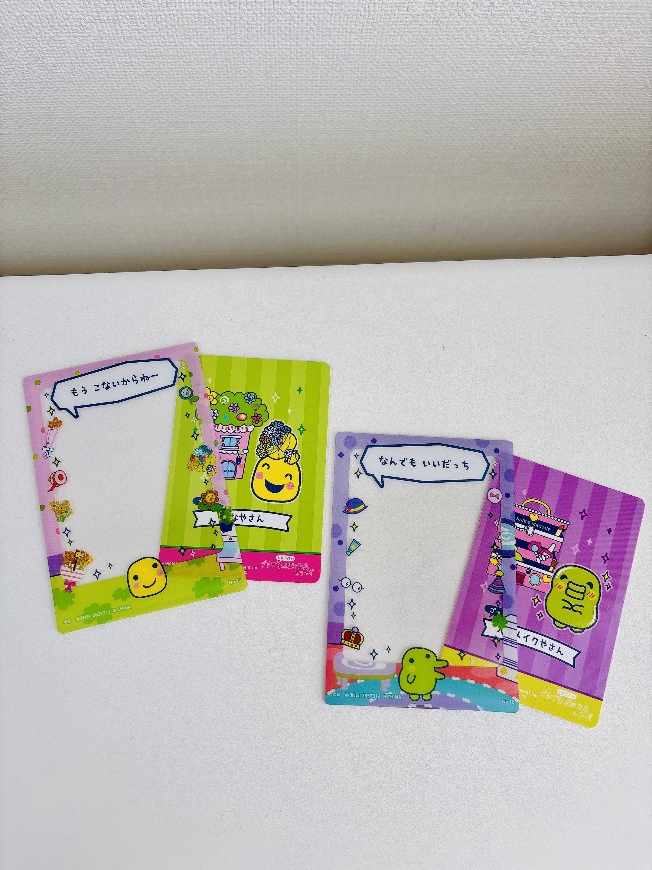 開けてみると、くちぱっちとまるっちでした!「⑩くちぱっちのヘアメイクやさん」と「⑤まるっちのはなやさん」!どちらも可愛かったです。そしてフレームが結構しっかりとした厚みがありました!セットになっているカードのままでも可愛いですが、我が家はたまごっちのごっちカードもいくつか集めているので、それを入れても良さそうでした。